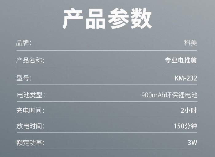 새로운 KM-232 Kemei 헤어 클리퍼 전문 전기 면도기 고출력 헤어 클리퍼 Ha Lang 특수 전기 클리퍼