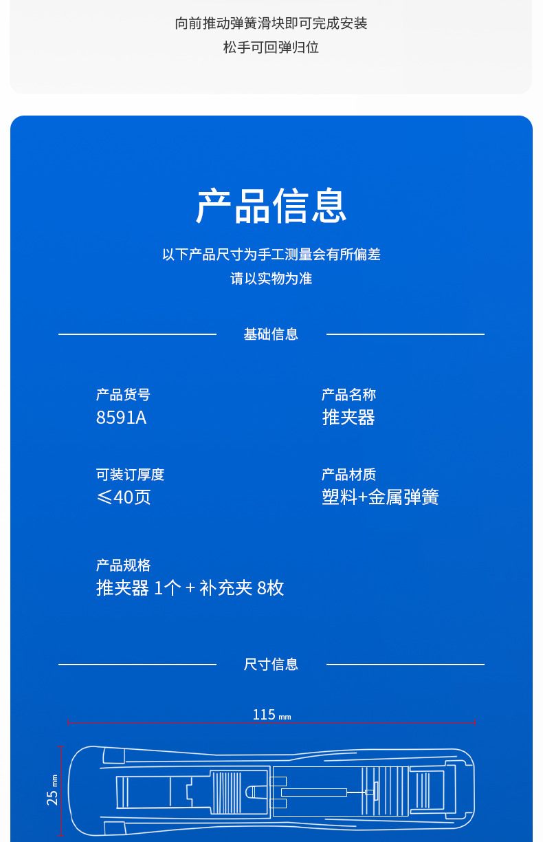 델리 폴더 학생들은 테스트 용지 저장 클립 푸셔 테스트 용지 바인딩 용지 고정 파일 클립을 사용합니다.스토어 가기