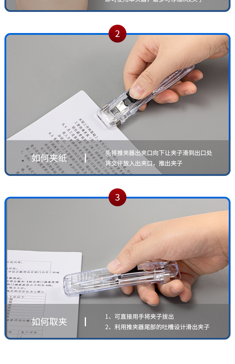 델리 폴더 학생들은 테스트 용지 저장 클립 푸셔 테스트 용지 바인딩 용지 고정 파일 클립을 사용합니다.