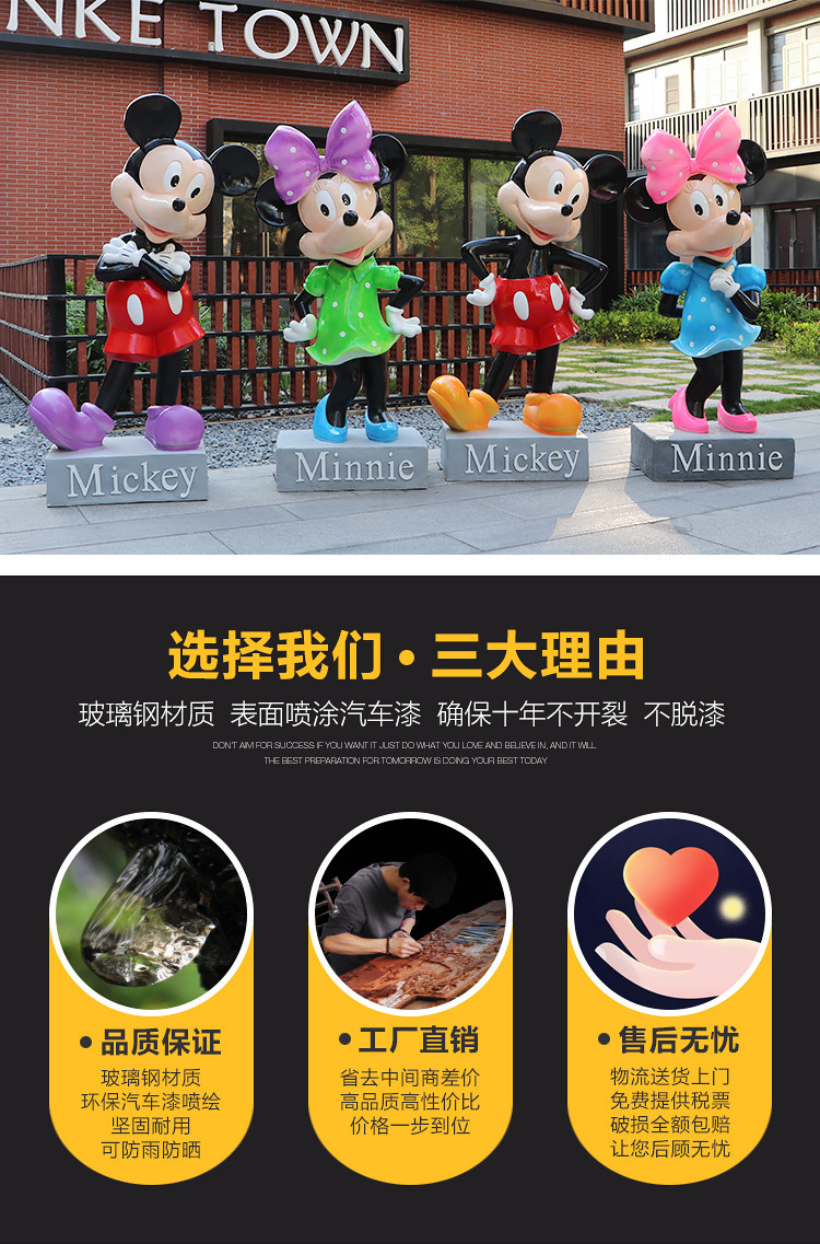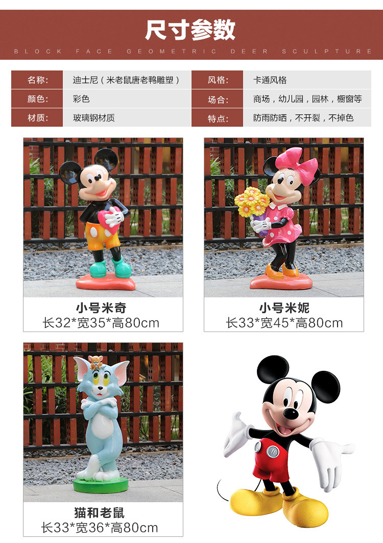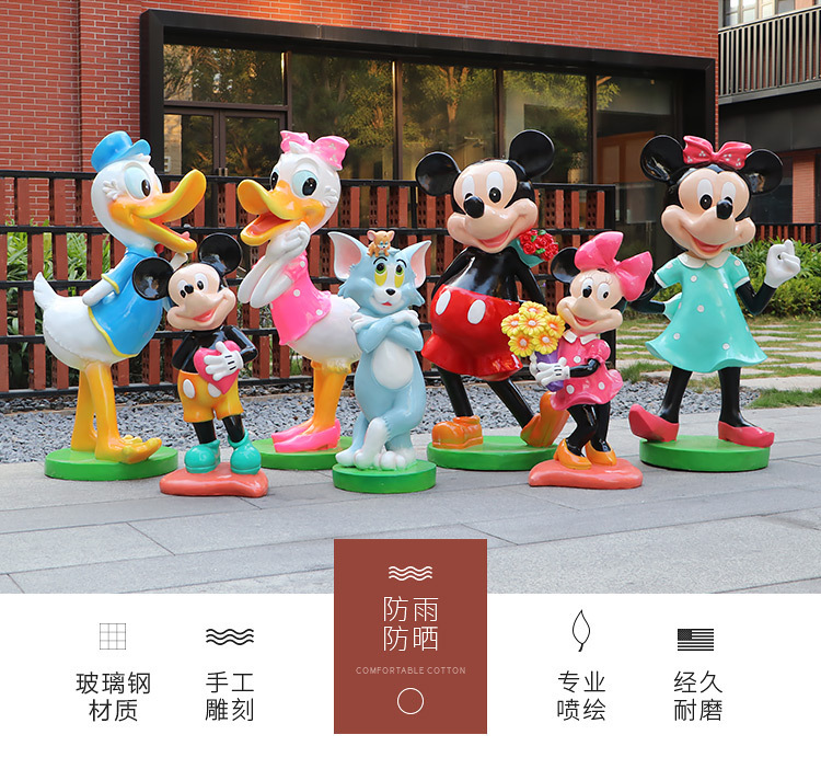 야외 미키 마우스 장식품 애니메이션 미키 인형 모델 상점 문 장식 유치원 유리 섬유 강화 플라스틱 만화 조각