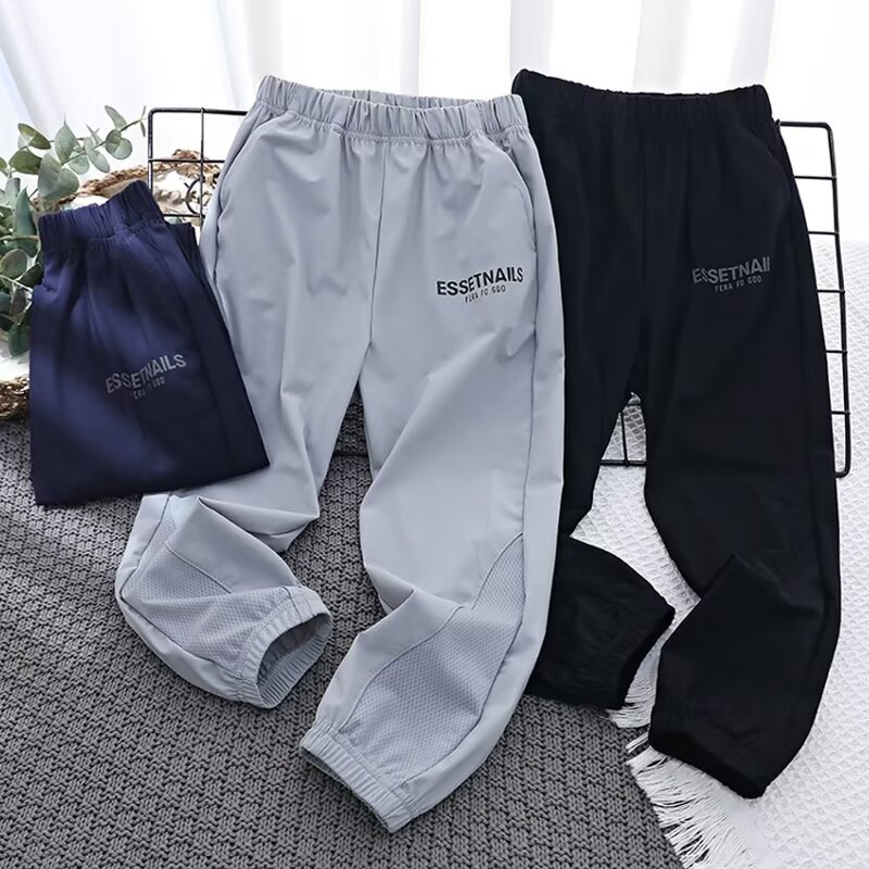 소년의 빠른 건조 스포츠 바지 2024 새로운 여름 얇은 스포츠 안티 모기 캐주얼 와이드 레그 바지 소년 풀린 버전스토어 가기