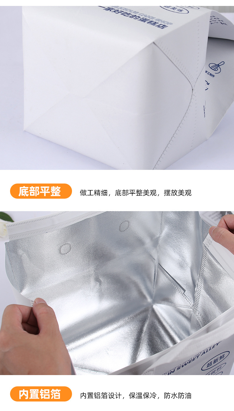 베이킹 테이크 아웃 특별한 일회용 포장 가방 알루미늄 호일 상업 디저트 우유 차 바베큐 부직포 케이크 단열 가방