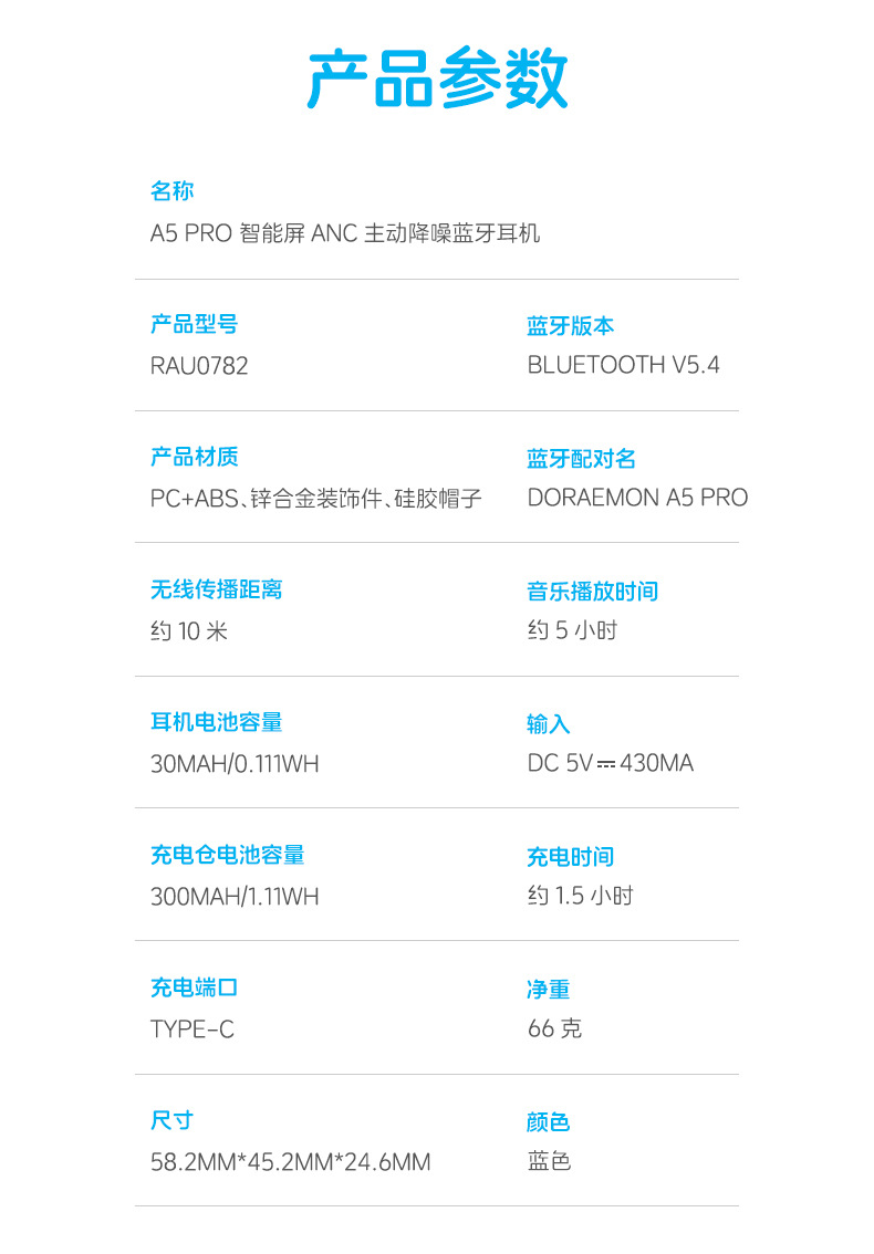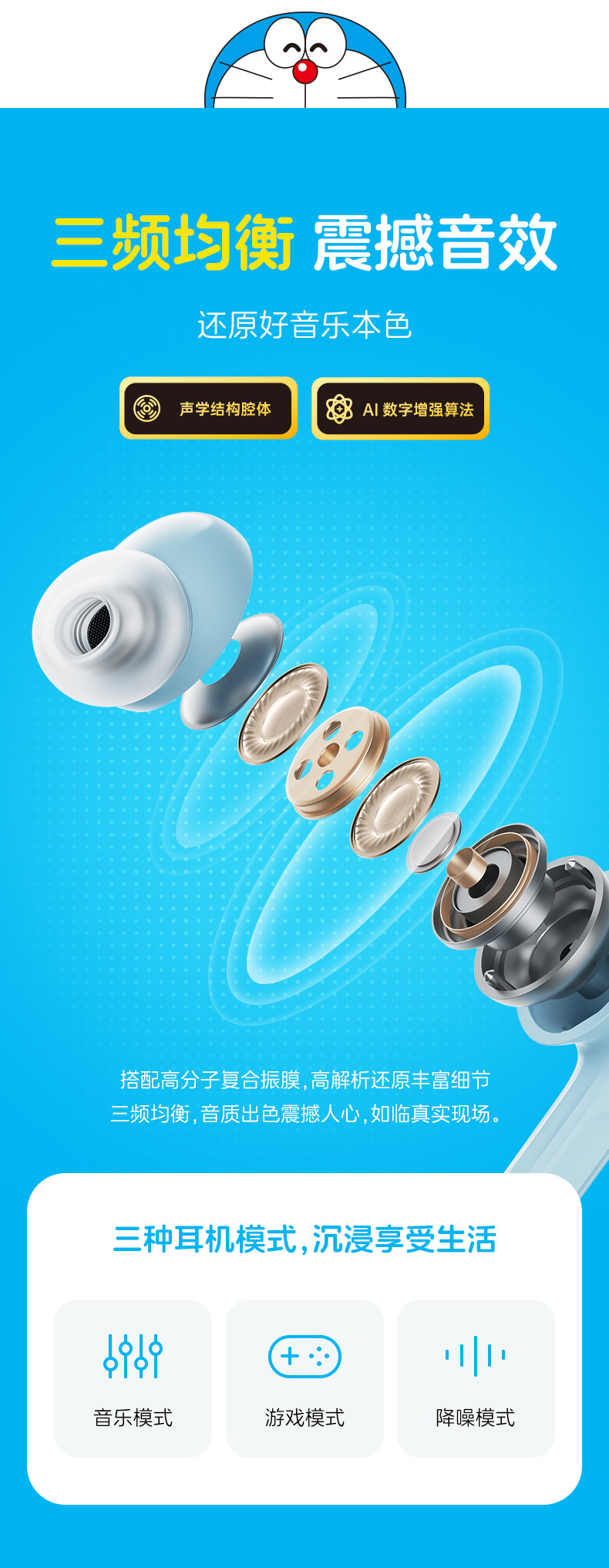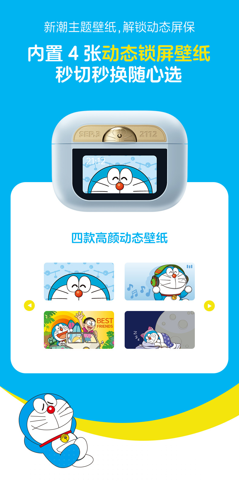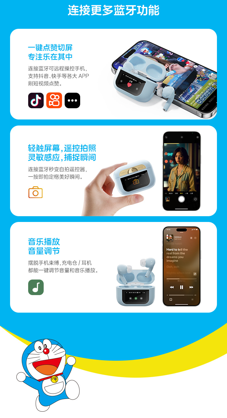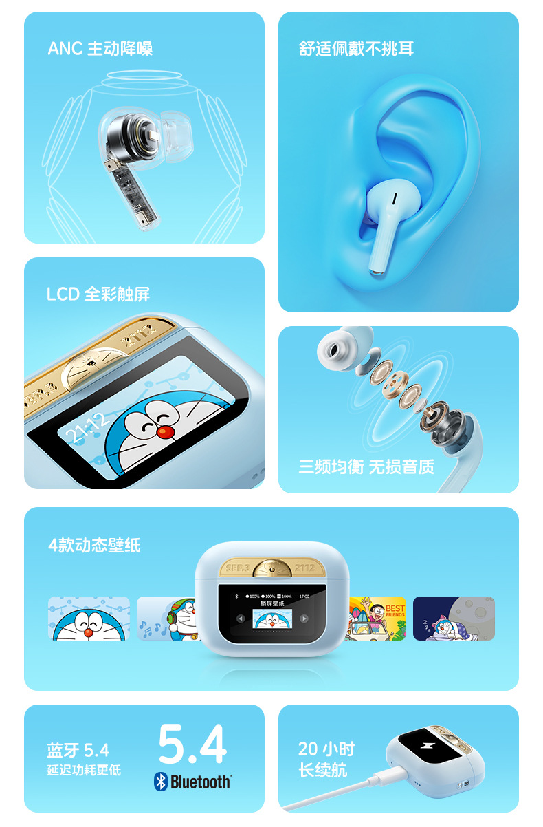 • [블루] 도라에몽 스마트 스크린 액티브 노이즈 감소 블루투스 헤드셋