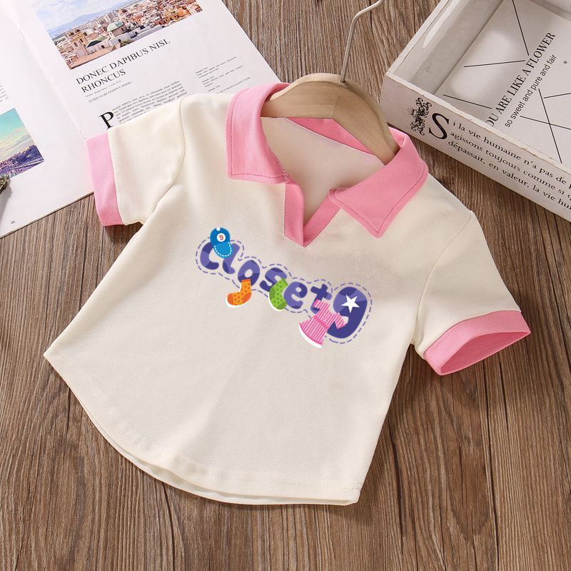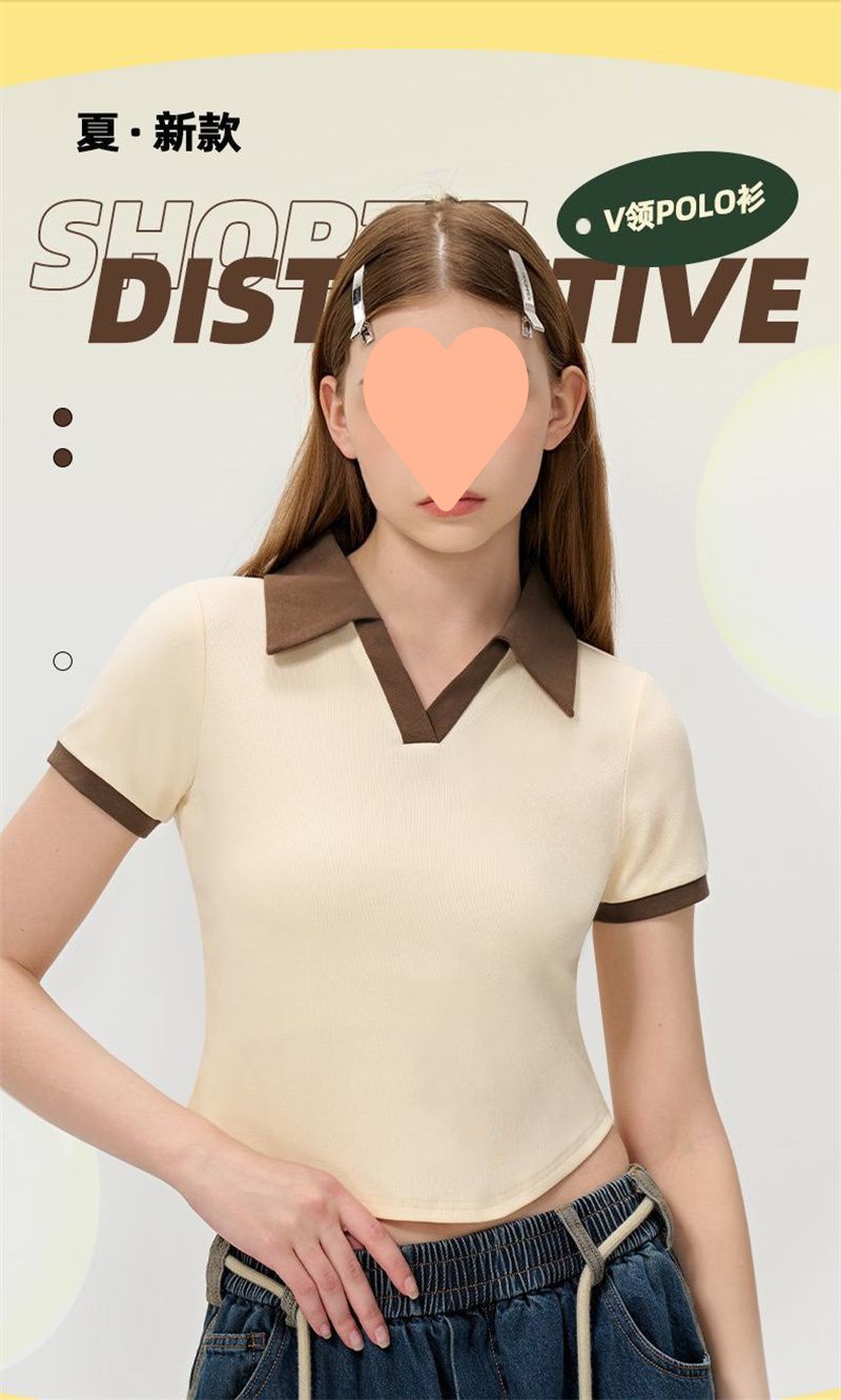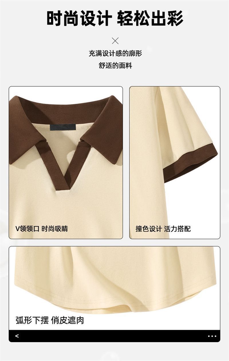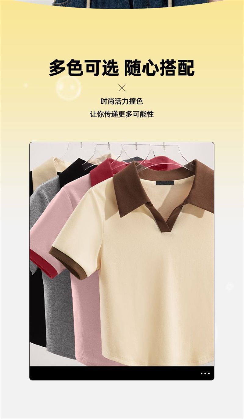 여자 반팔 티셔츠 2025 여름 신작 폴로 칼라 탑 아동 스타일 칼라 대비 색상 땀 흡수 셔츠스토어 가기