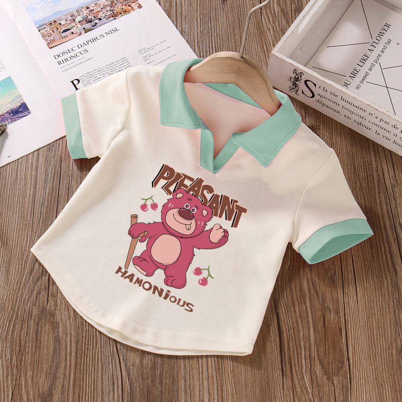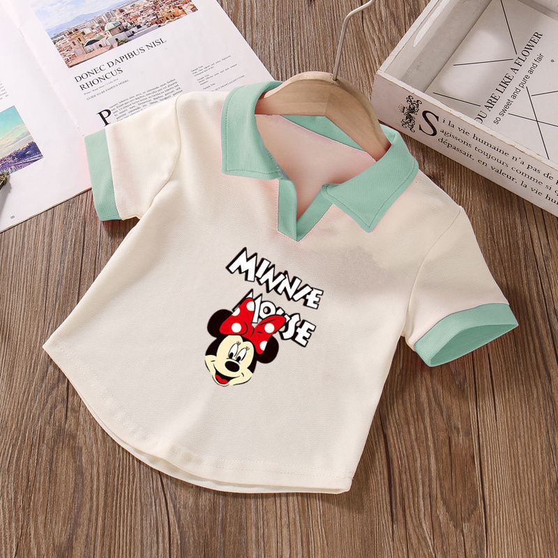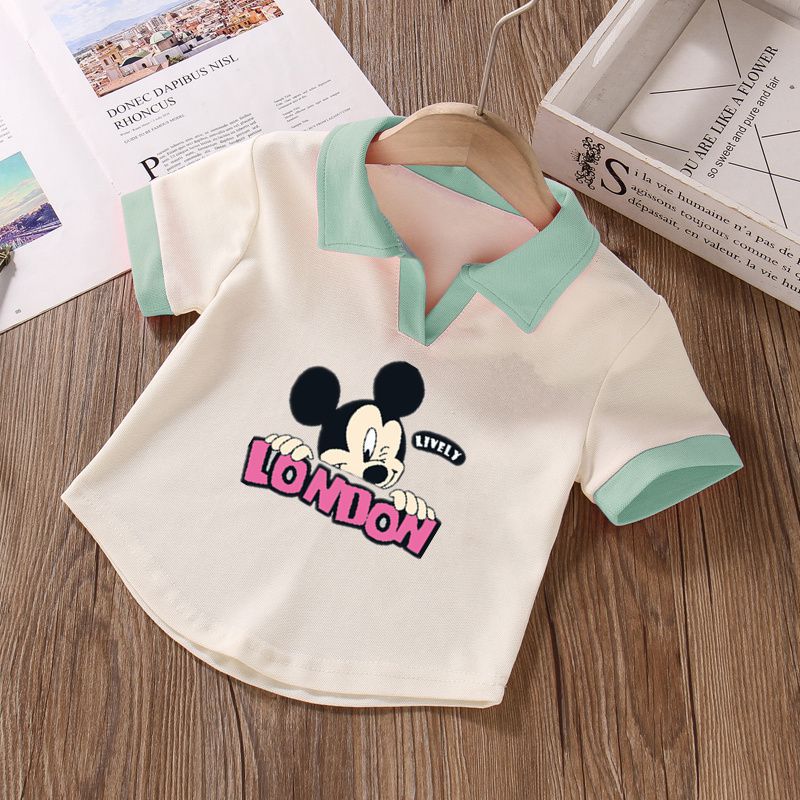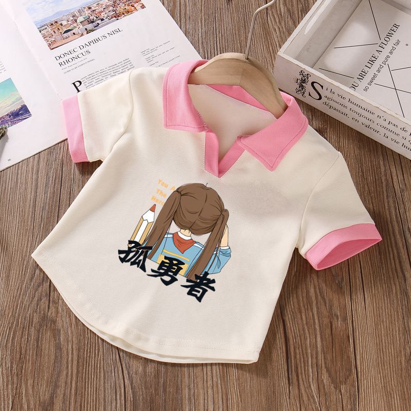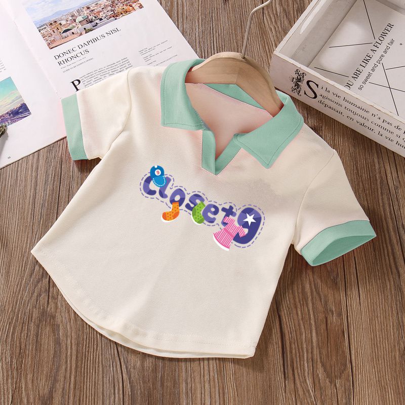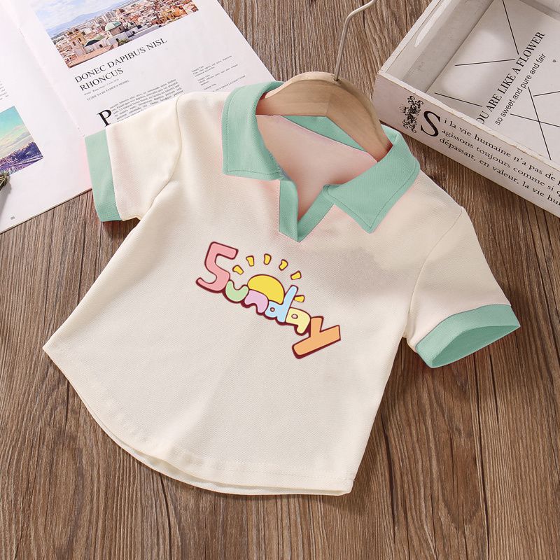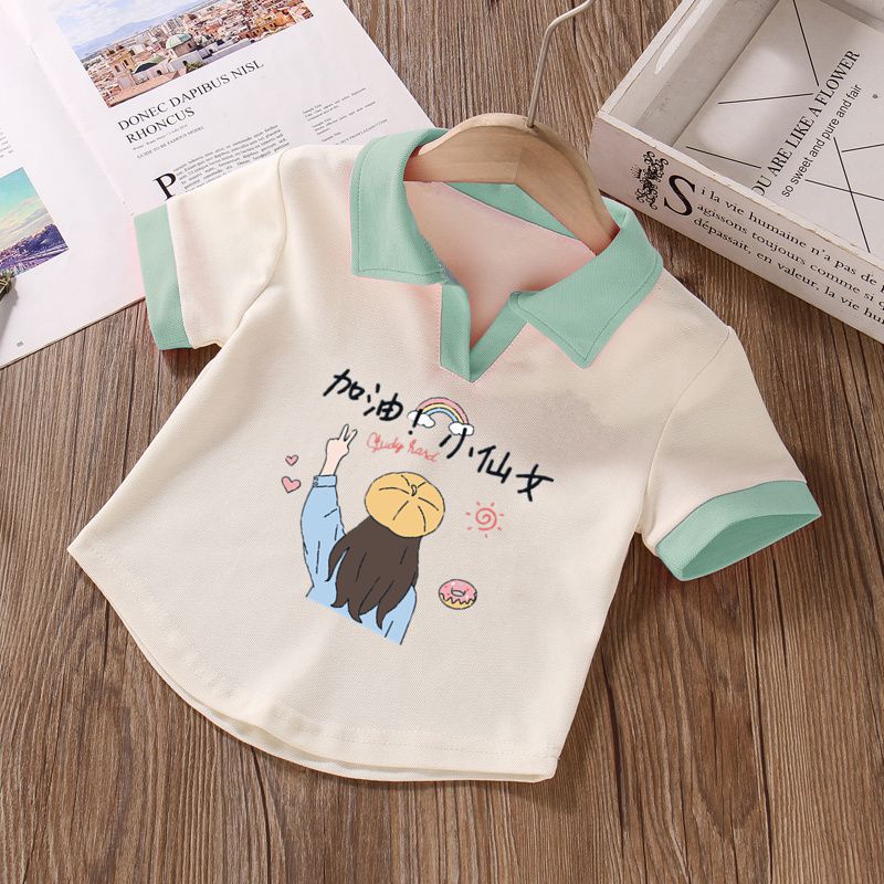 여자 반팔 티셔츠 2025 여름 신작 폴로 칼라 탑 아동 스타일 칼라 대비 색상 땀 흡수 셔츠