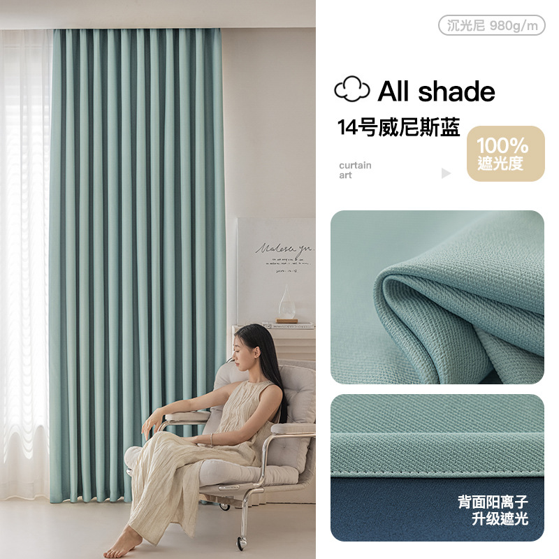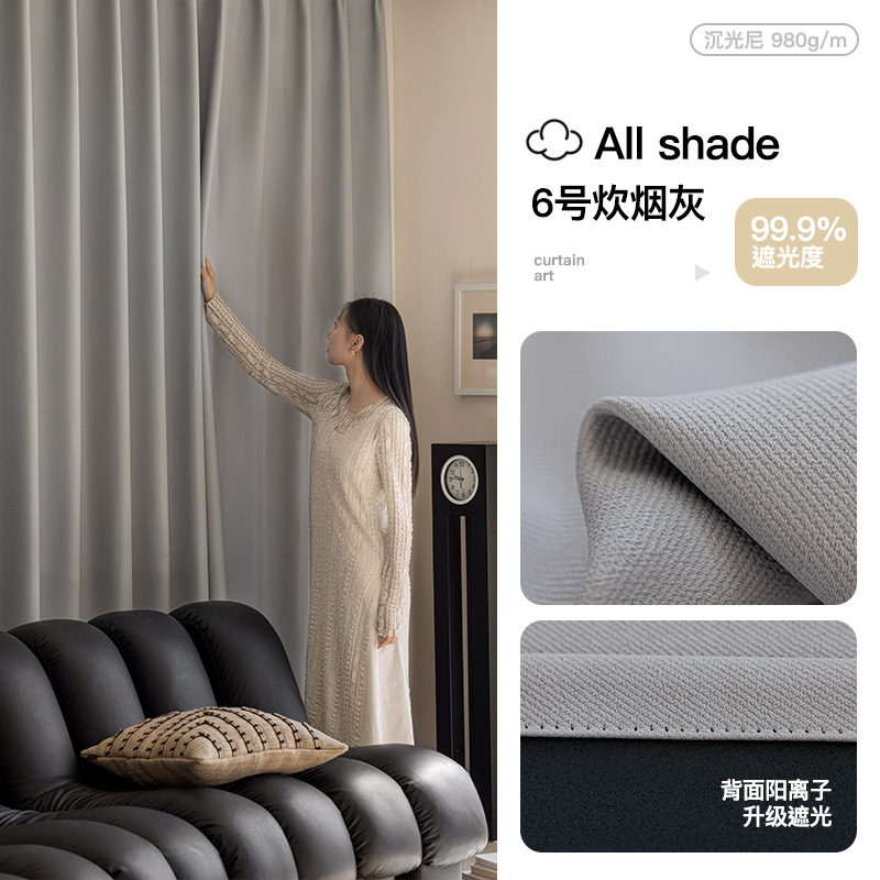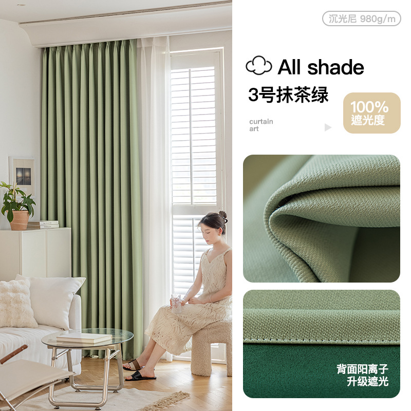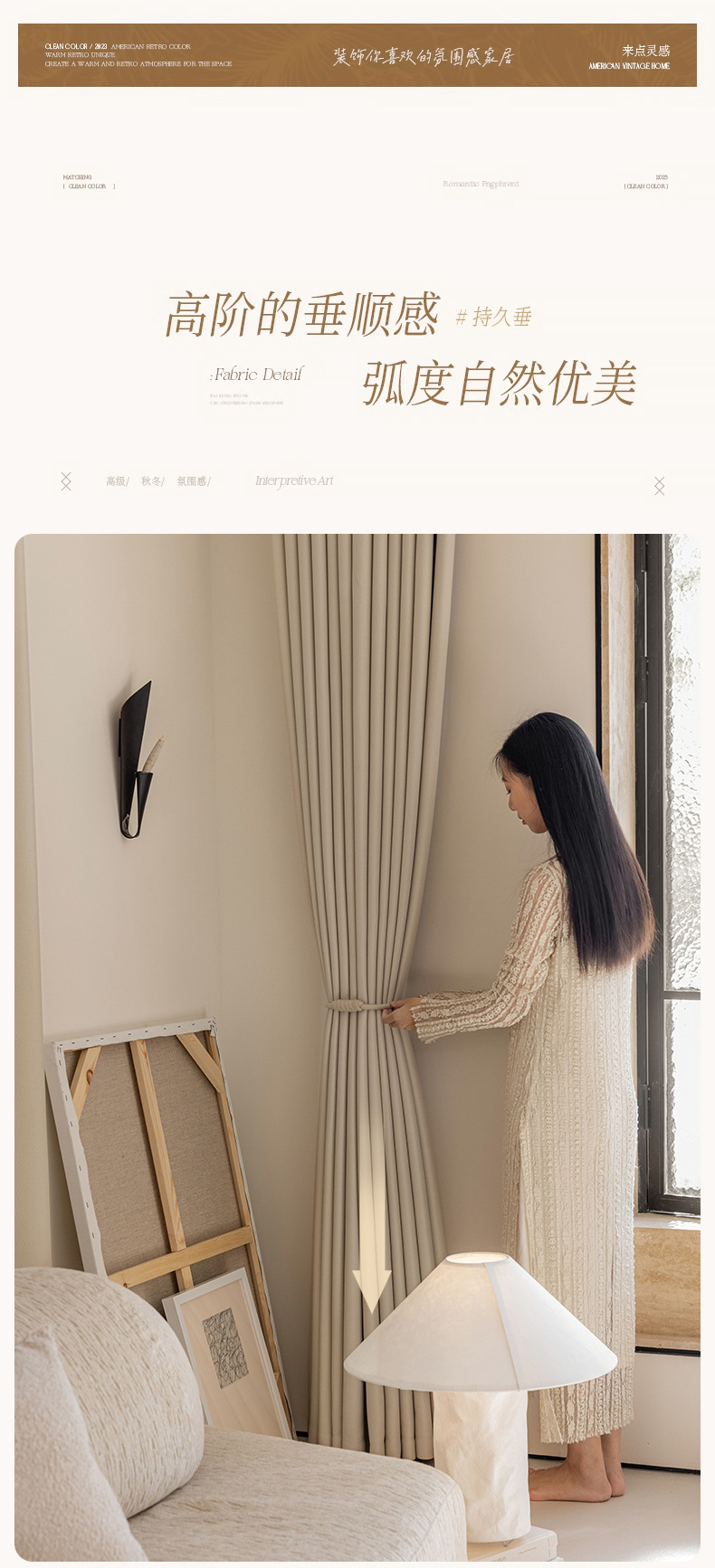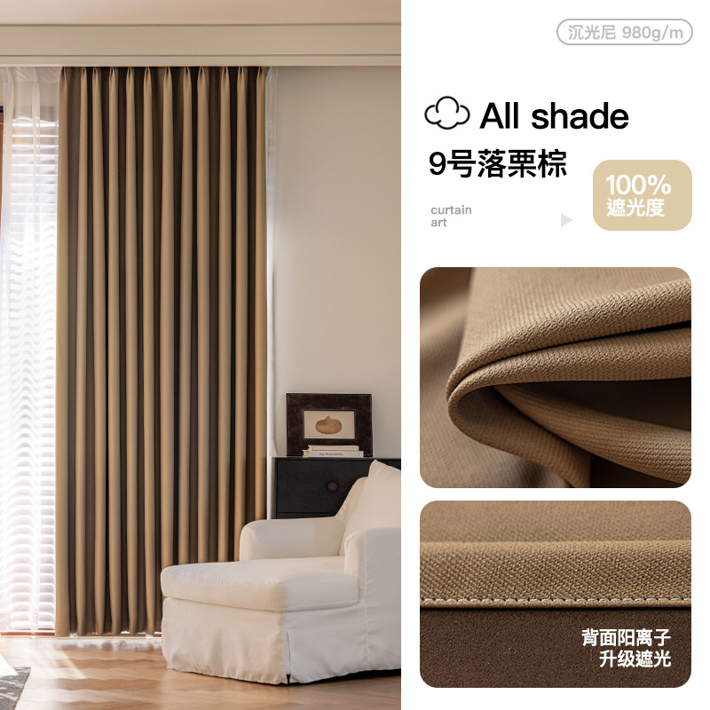 완전 암막 커튼, 심플한 라이트 컬러, 밀크티 컬러, 발코니, 침실, 서재, 심플 모던 라이트 럭셔리 완제품, 샤오싱 도매스토어 가기