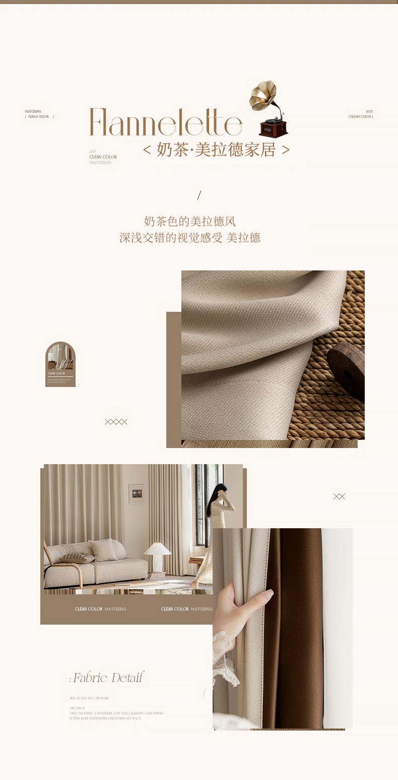 완전 암막 커튼, 심플한 라이트 컬러, 밀크티 컬러, 발코니, 침실, 서재, 심플 모던 라이트 럭셔리 완제품, 샤오싱 도매