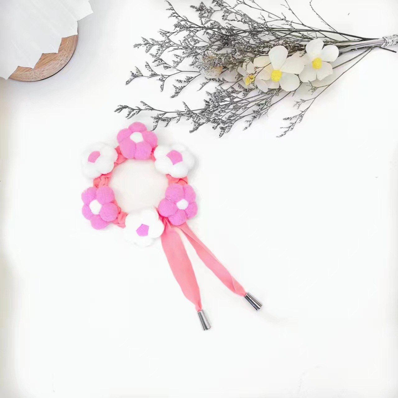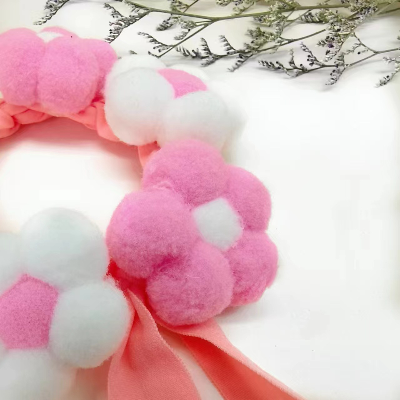 • 핑크와 화이트 플러시 칼라