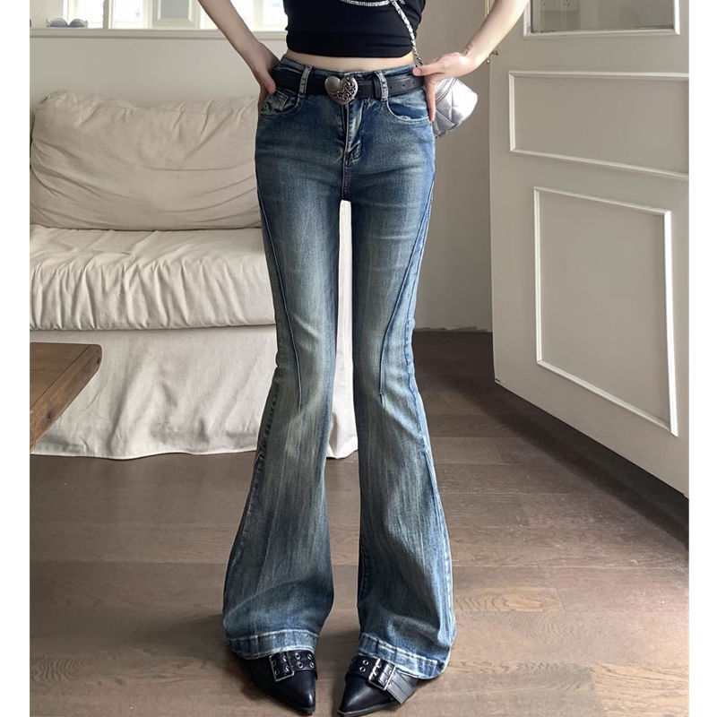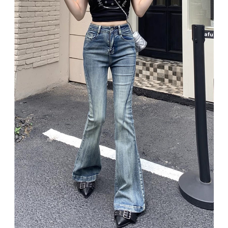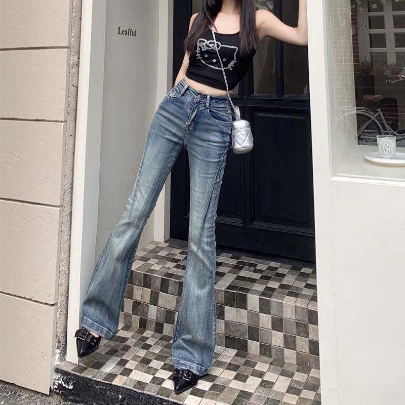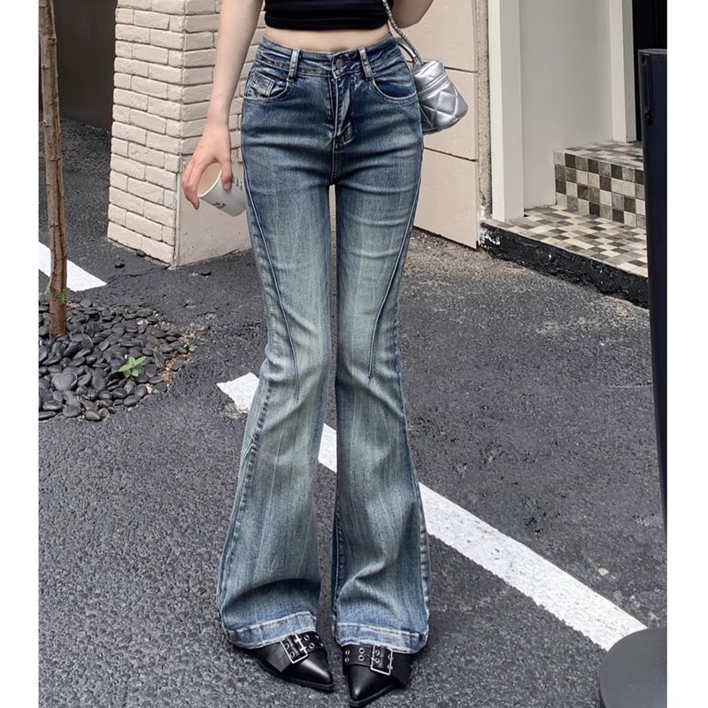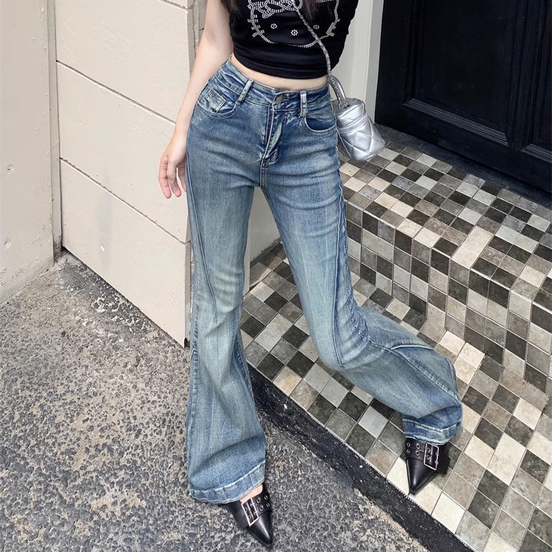 다크 블루 넓은 다리 청바지 여성의 2024 년 여름 새로운 틈새 스티칭 디자인 높은 허리 직선 느슨한 걸레 바지스토어 가기