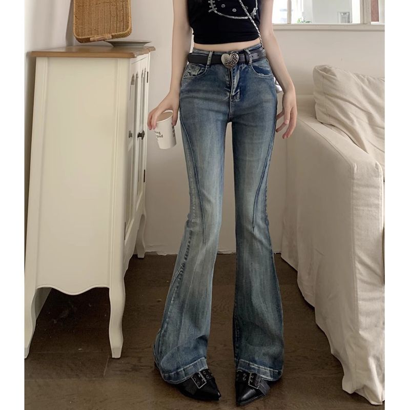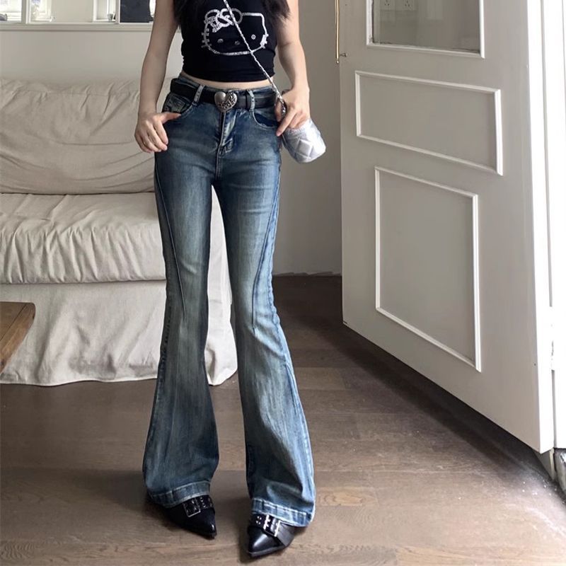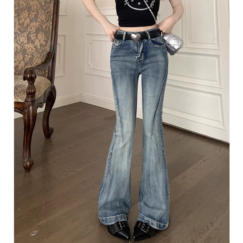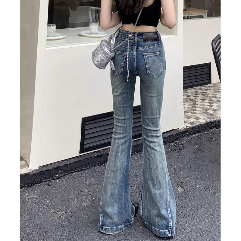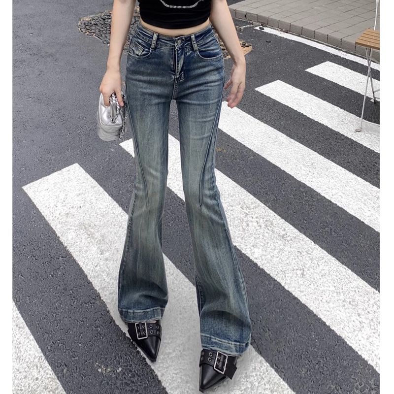 다크 블루 넓은 다리 청바지 여성의 2024 년 여름 새로운 틈새 스티칭 디자인 높은 허리 직선 느슨한 걸레 바지스토어 가기