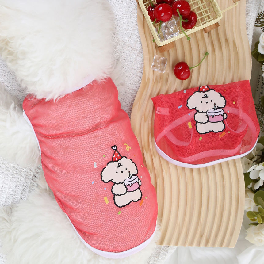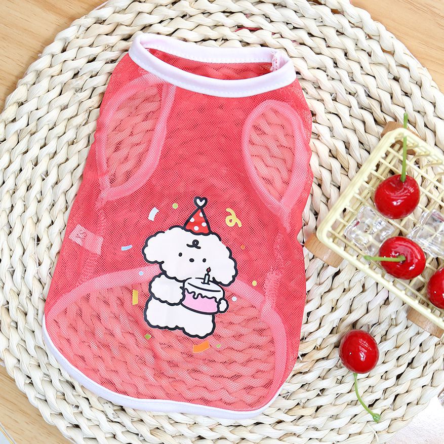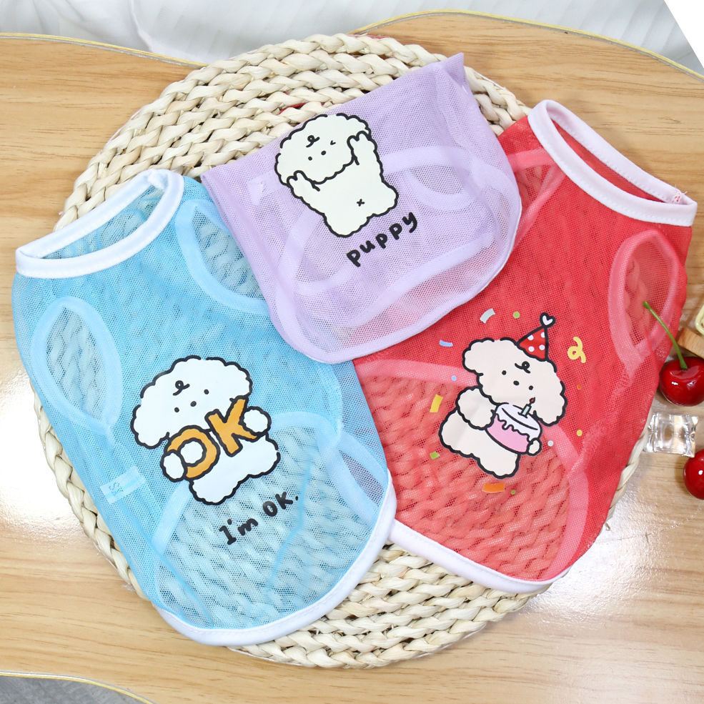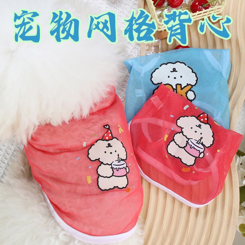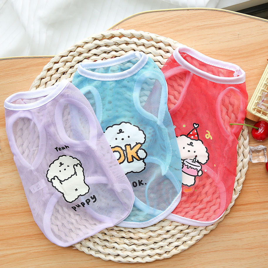 애완 동물 옷 원래 신선하고 세련된 여름 얇은 고양이와 개 옷 통기성 그리드 귀여운 만화 강아지 인쇄