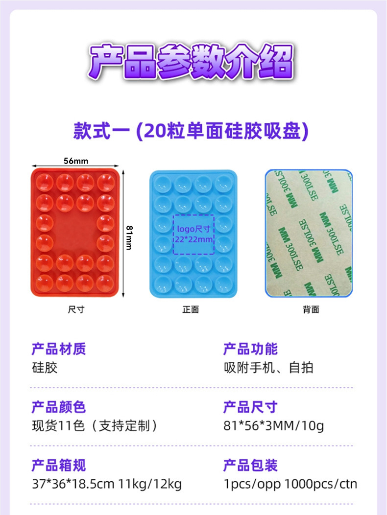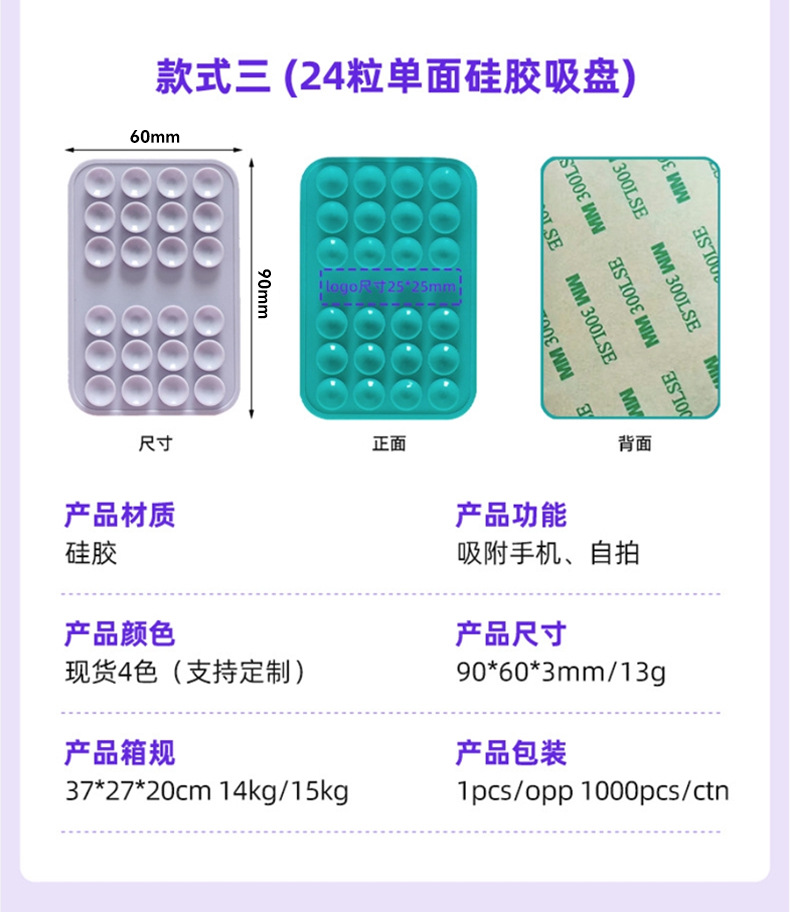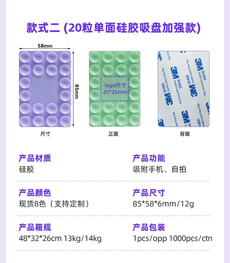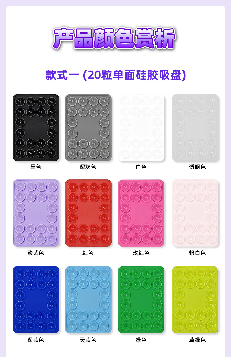 국경 간 뜨거운 판매 두꺼운 사각형 실리콘 휴대 전화 흡입 컵 20 단면 흡입 컵 가죽 케이스 흡입 컵 충전 보물 흡입 컵