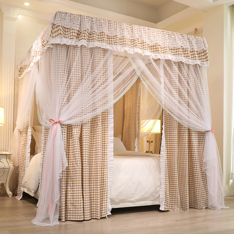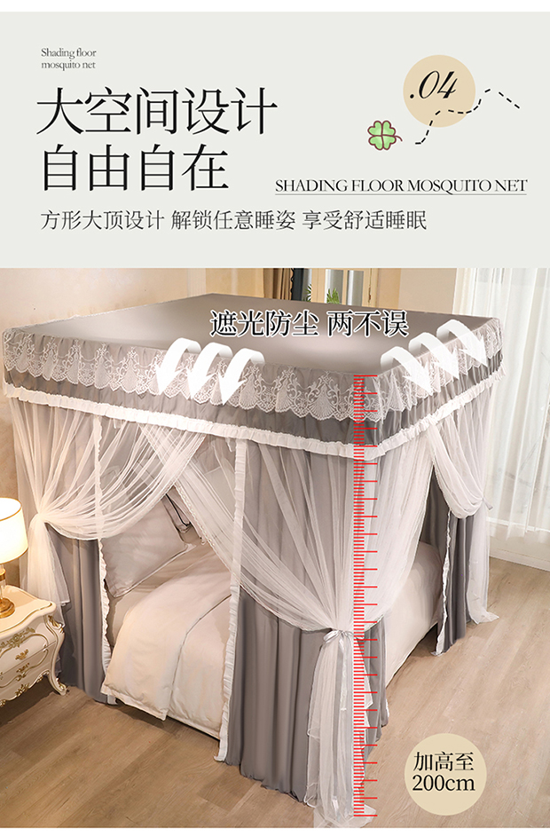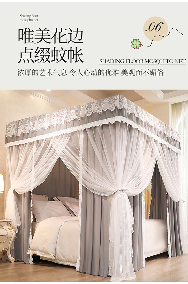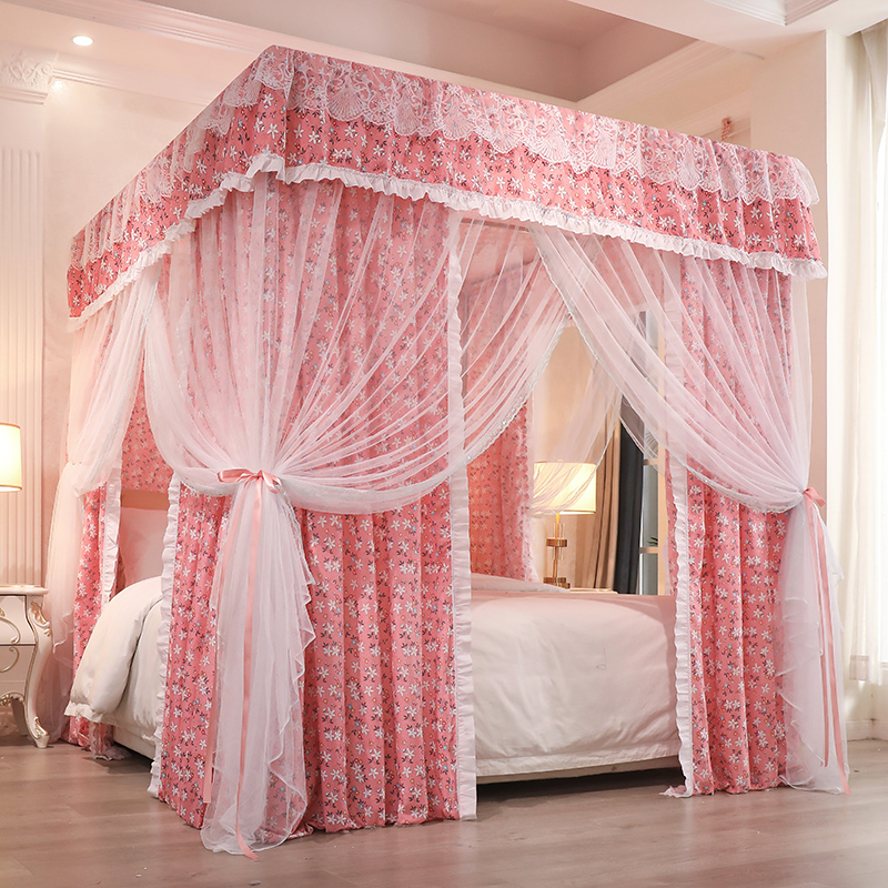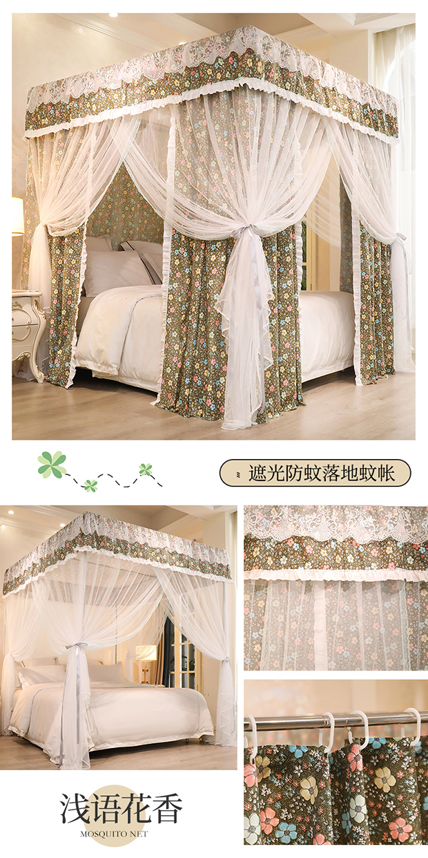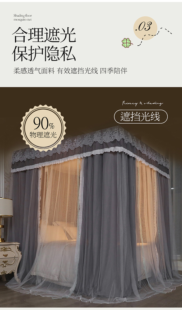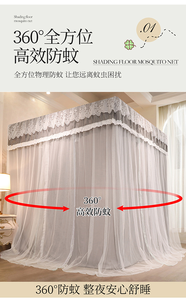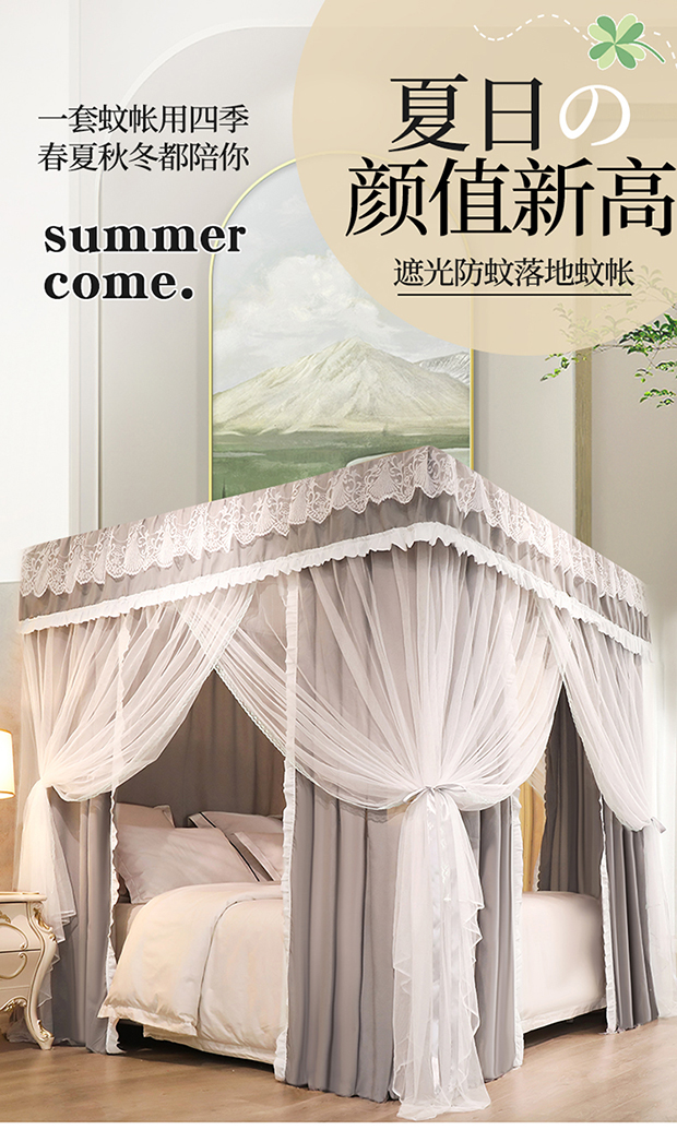 WBZ7 반대로 엿보기 모기장 음영 침대 커튼 통합 3 도어 코트 바닥 방진 공주 두꺼운 침대 커튼스토어 가기