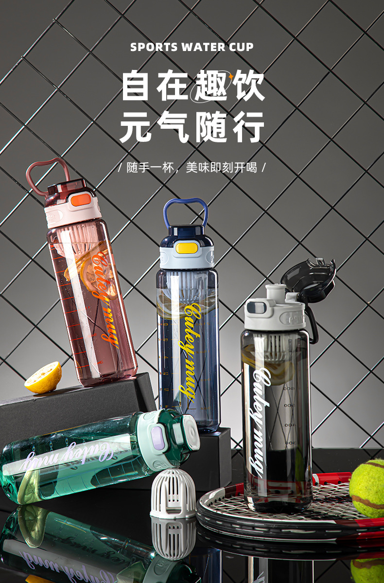 스포츠 주전자 대용량 남자의 고온 저항하는 물 컵 850ML-1L 남자 밀짚 피트니스 여자의 휴대용 물병 배치