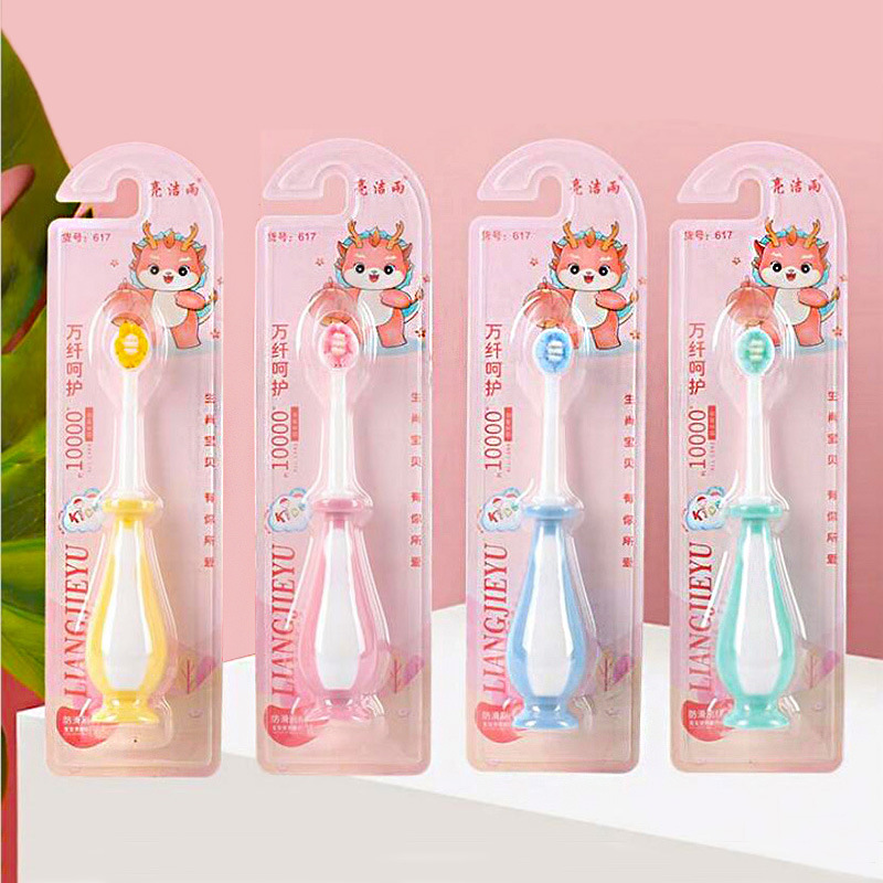 어린이 모양의 구멍 둥근 머리 부드러운 강모 칫솔 만화 아기 2-3-4-5-6 세 훈련 흡입 컵 칫솔 슈퍼마켓스토어 가기