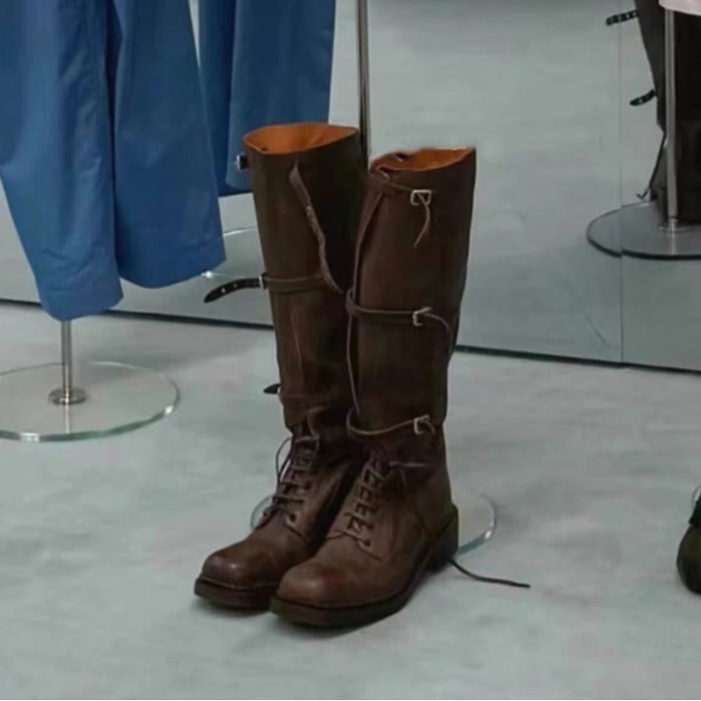 소가죽 버전 ~ 여성용 하이탑 나이트 부츠, 두꺼운 굽 버클, 디스트레스드 메일라드 웨스턴 카우보이 부츠, 여성용 롱 패션 부츠스토어 가기