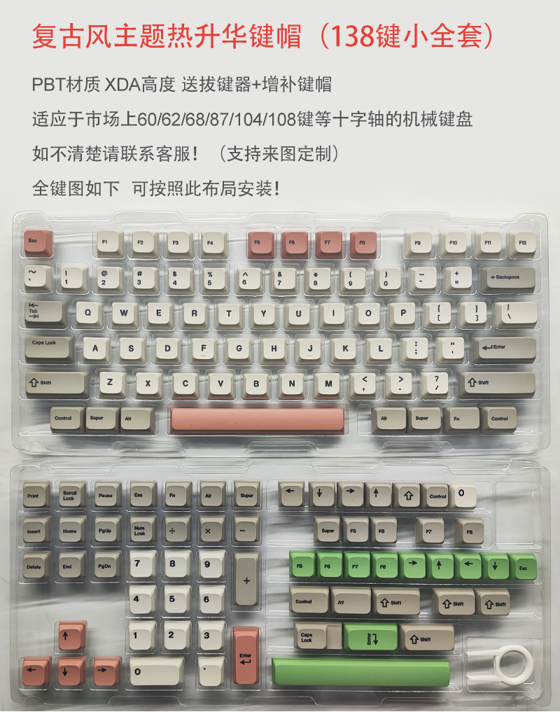 9009 복고풍 스타일 XDA 키캡 일본어, 한국어, 러시아어 및 태국어 음성 PBT 승화 기계식 키보드 138 소형 세트스토어 가기