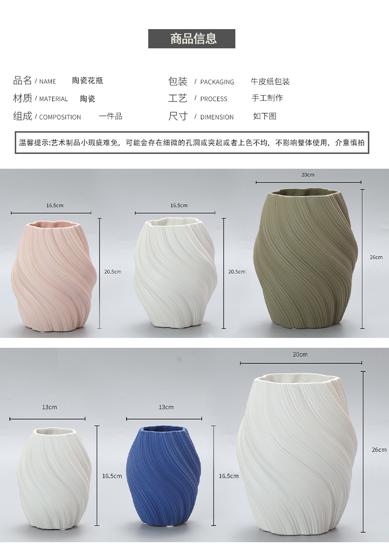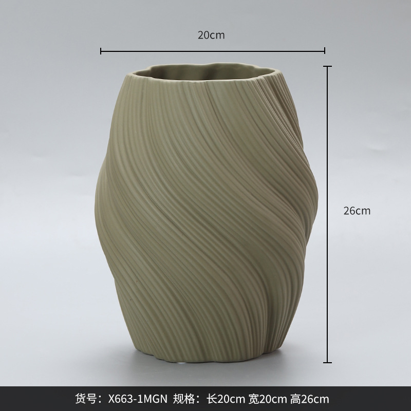 베스트 웨스트 트위스트 세라믹 꽃병 고급 감각 장식품 거실 식탁 물 키우기 말린 꽃 꽃병 대형 구경