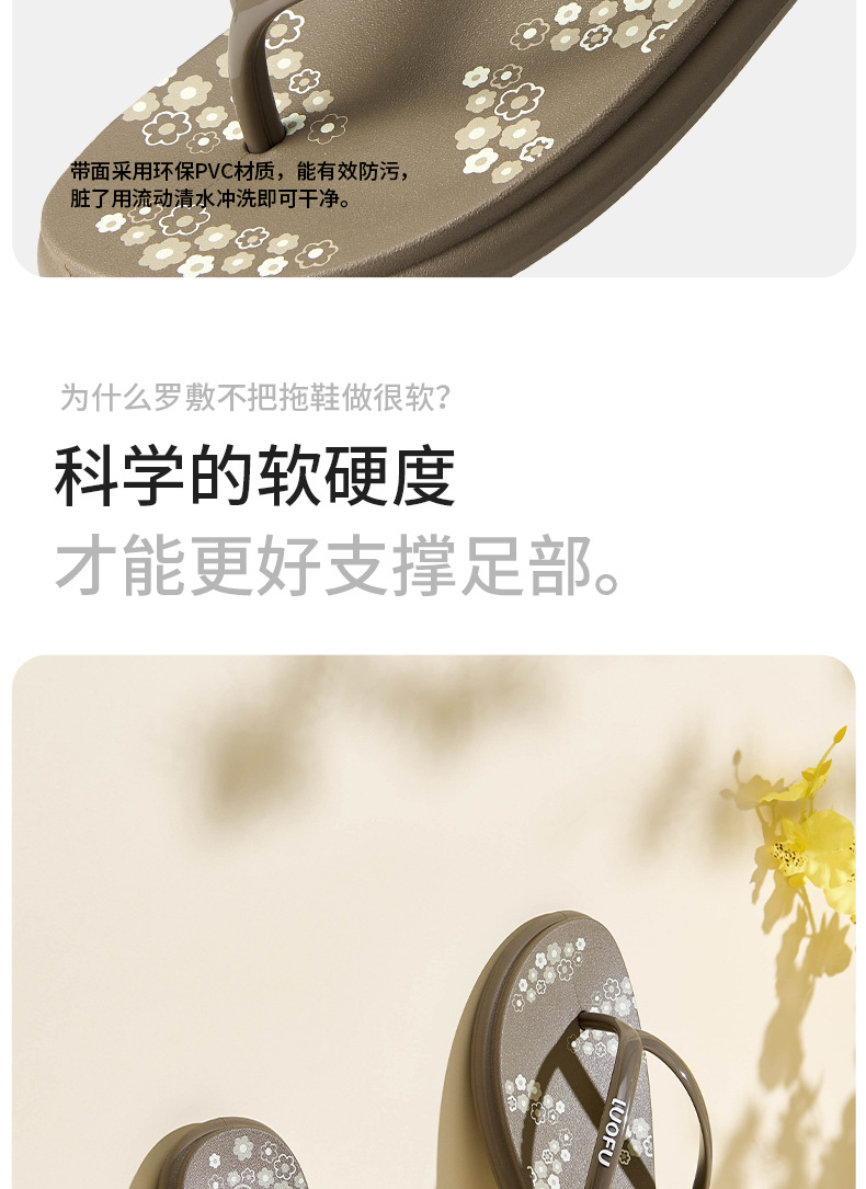 LUOFU Luofu Flip-Flops 여성 여름 패션 쿨 미끄럼 방지 슬리퍼 스퀘어 힐 홀리데이 비치 꽃 플립 플롭스토어 가기