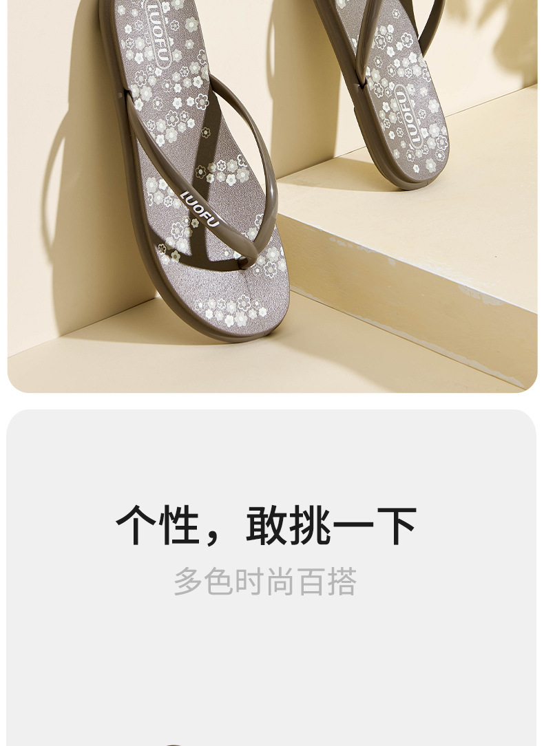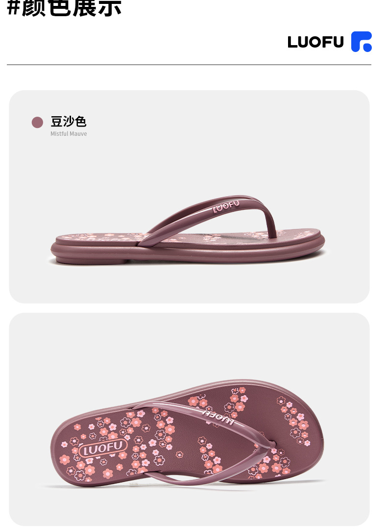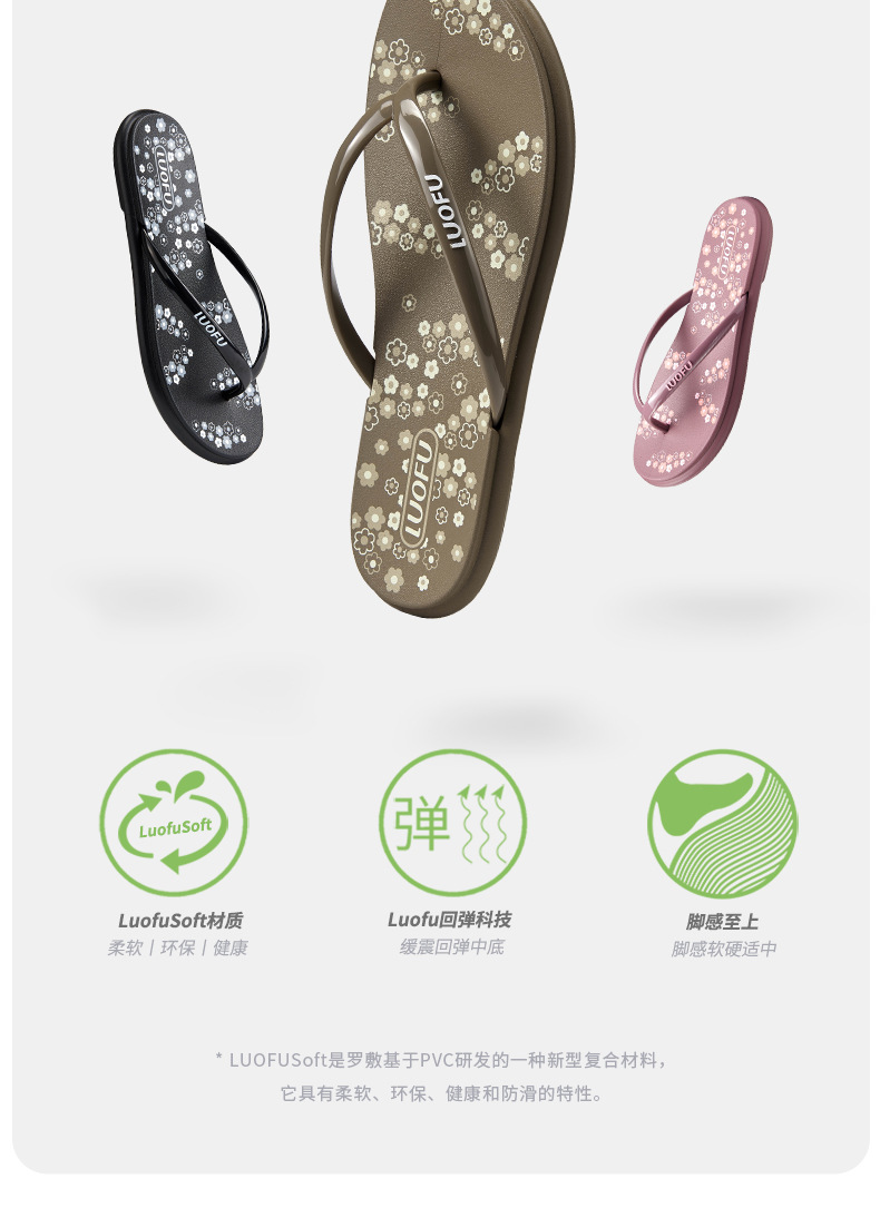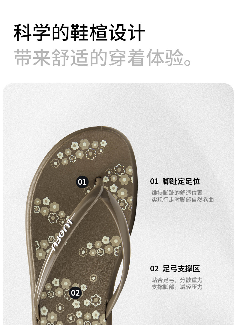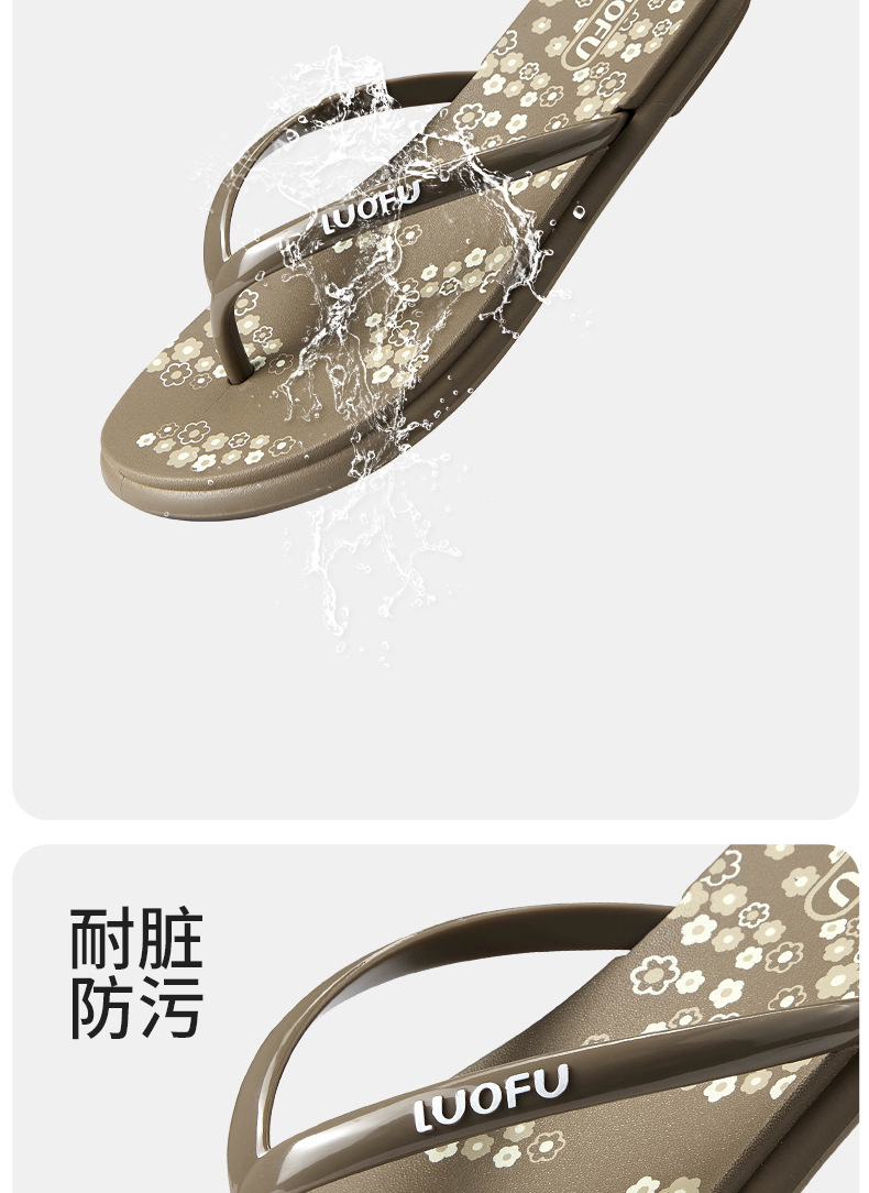 LUOFU Luofu Flip-Flops 여성 여름 패션 쿨 미끄럼 방지 슬리퍼 스퀘어 힐 홀리데이 비치 꽃 플립 플롭