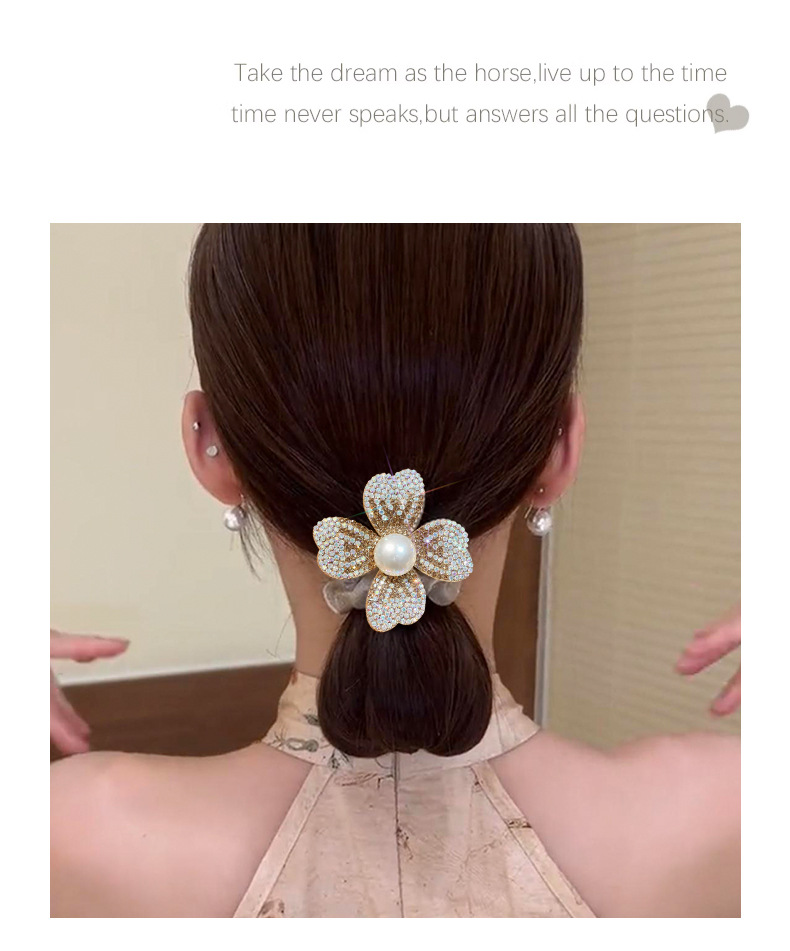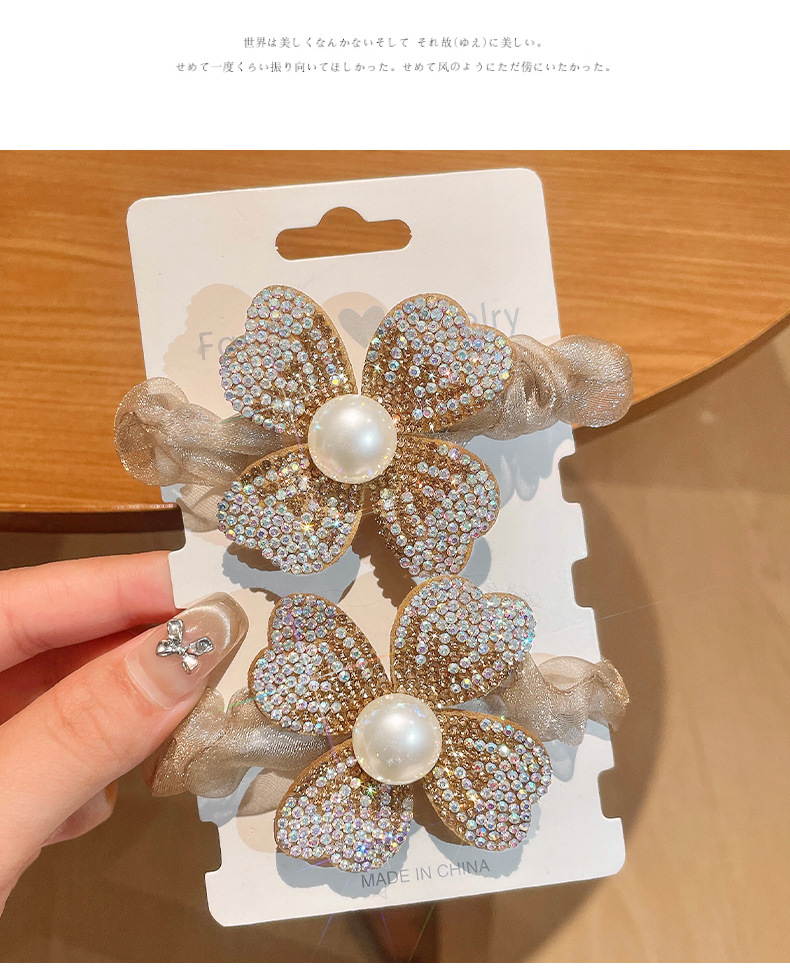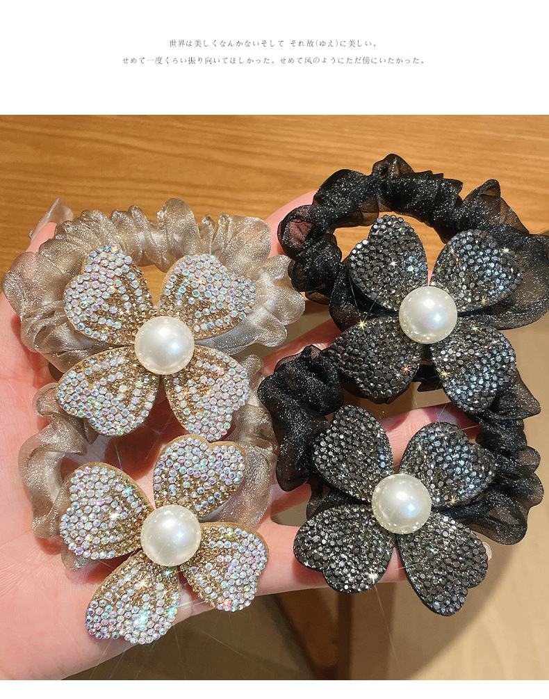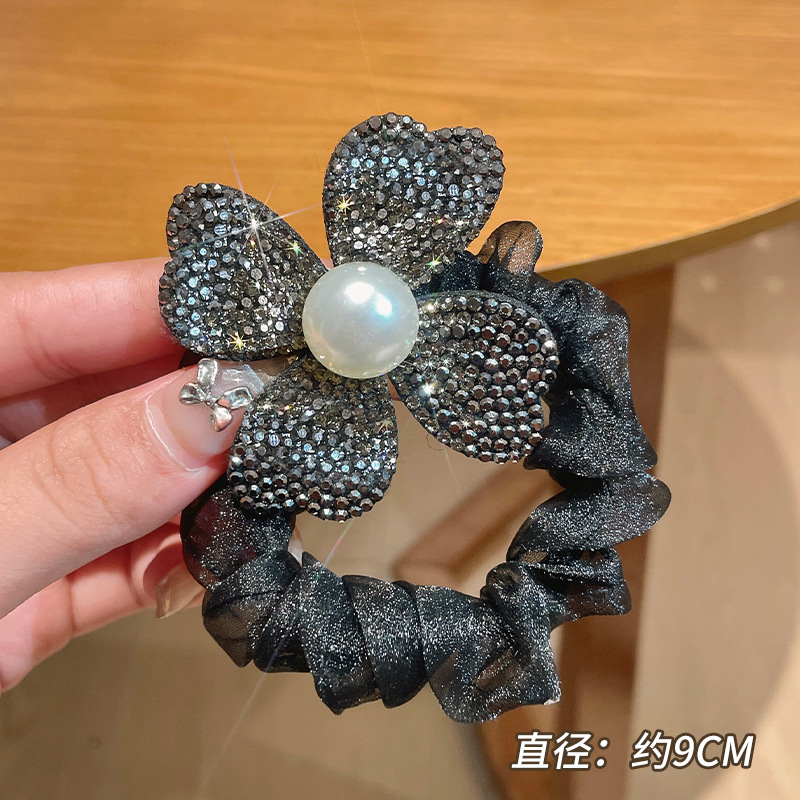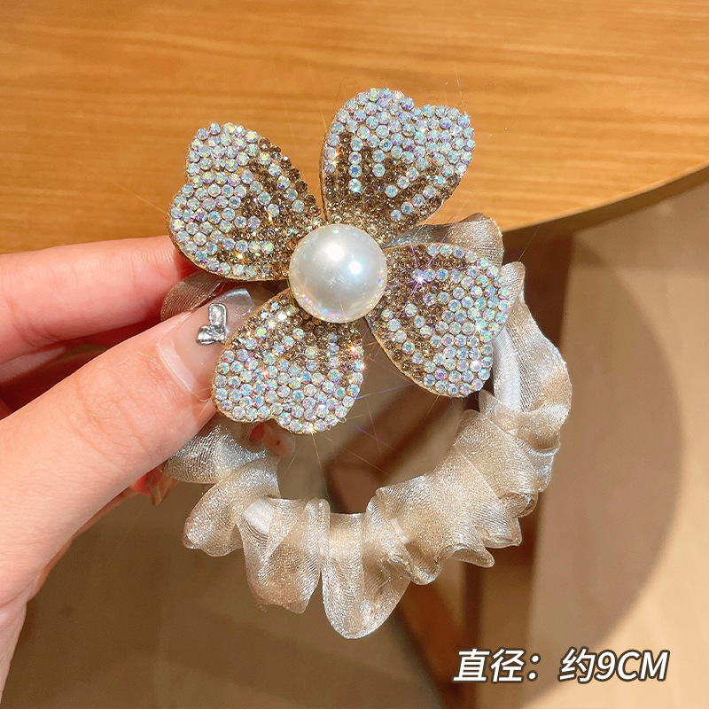 기질 라인스톤 해바라기 작은 장내 머리 반지 여성용 헤어 넥타이 고무 밴드 낮은 포니 테일 헤어 로프 고급 감각 헤드 밴드스토어 가기