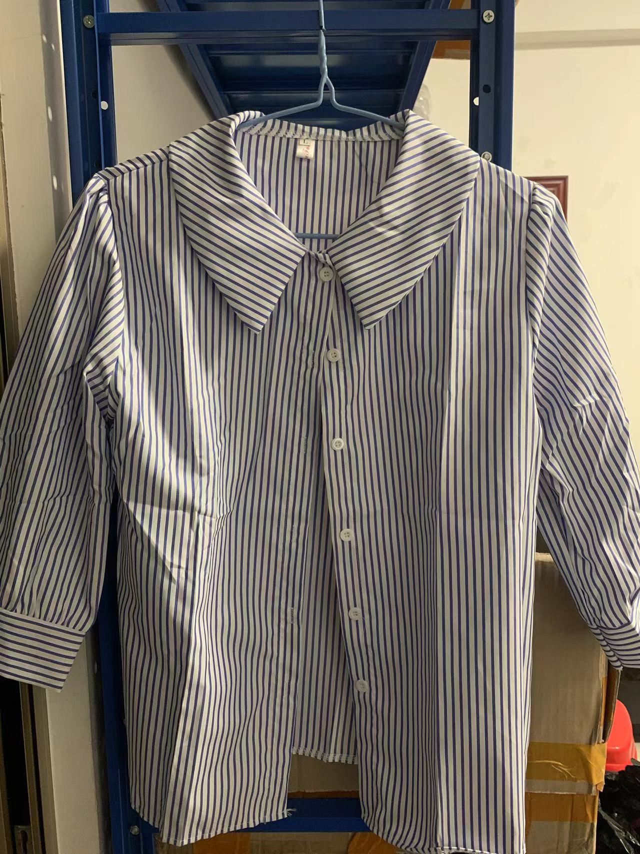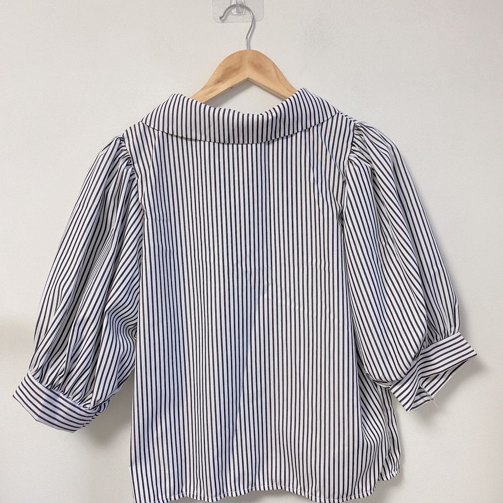한국 스타일 레트로 반소매 줄무늬 셔츠 여자 여름 2024 새로운 도착 여자 느슨한 올 매치 퍼프 소매 셔츠스토어 가기