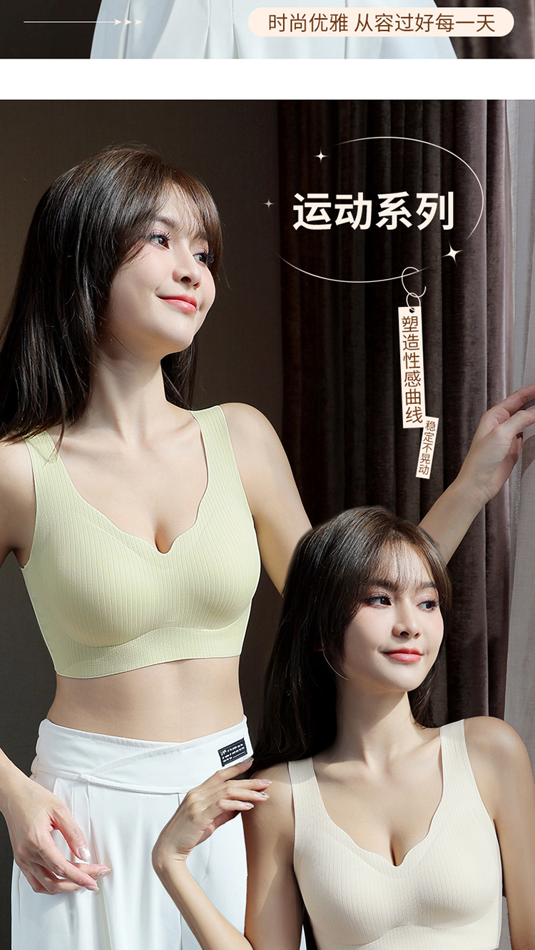 스트라이프 스포츠 원활한 속옷 조끼 스타일 여성 여름 얇은 모임 라텍스 요가 충격 방지 고정 홈 브라