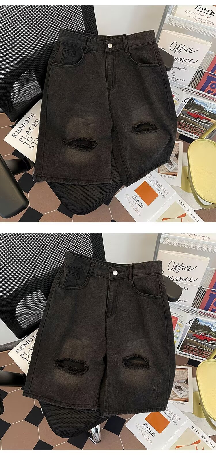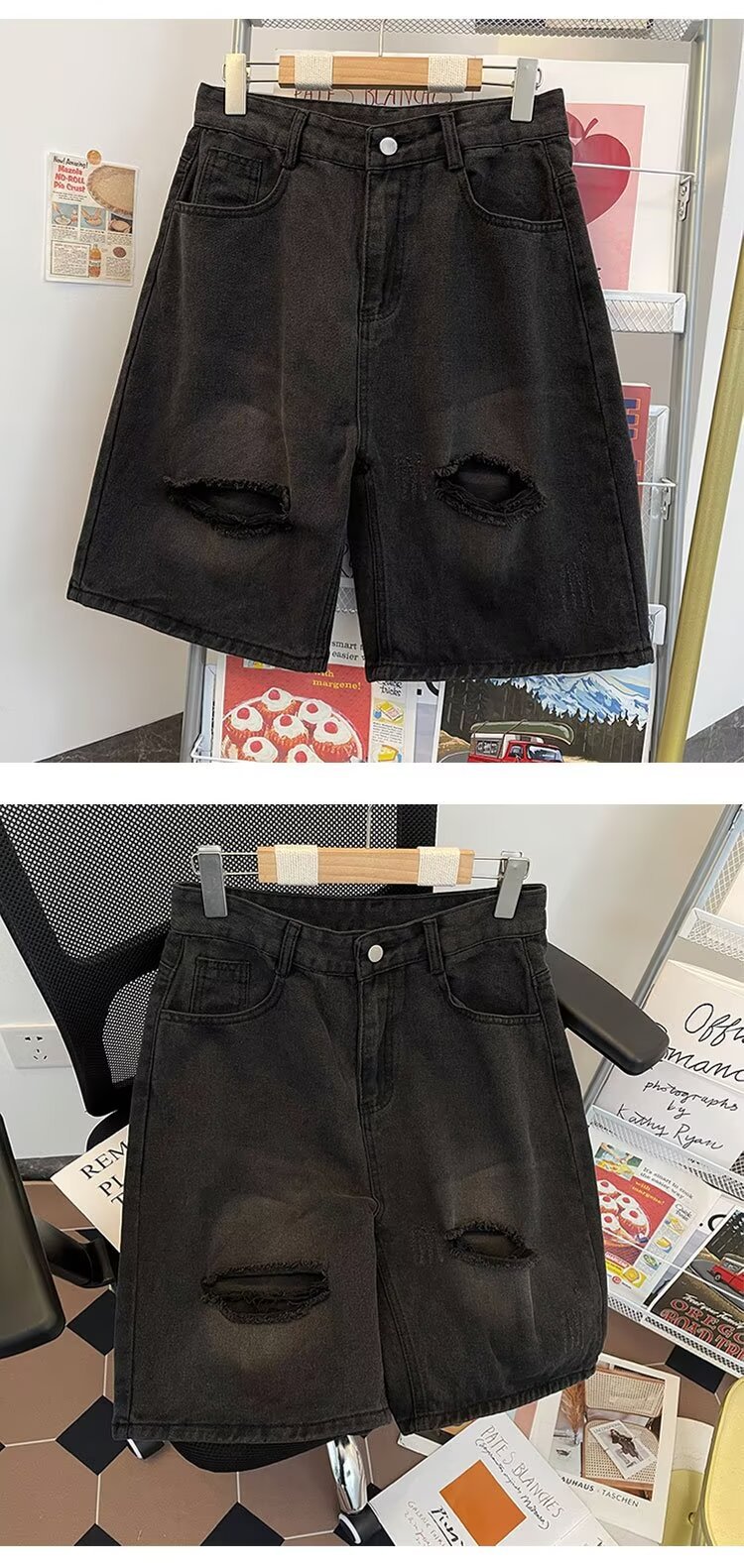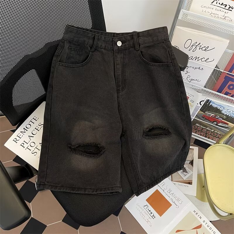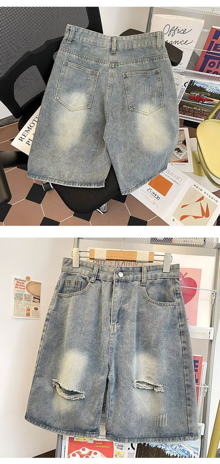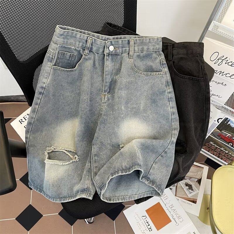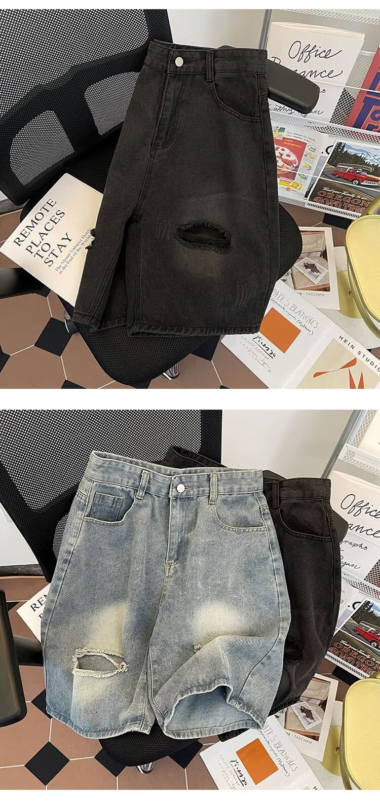 미국식 레트로 찢어진 청바지 느슨하고 잘 생긴 여름 트렌디 한 반바지 바지 바지스토어 가기