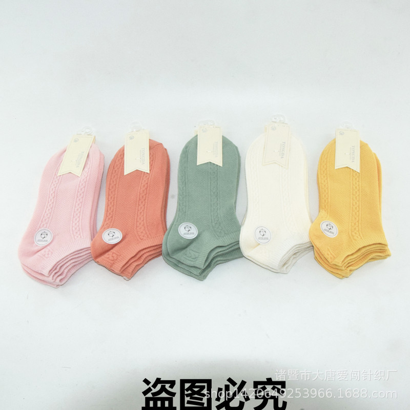 재고 숙녀 짧은 튜브 단색 면 양말 봄과 여름 얇은 빛 Luo Kou 보트 양말 재고 도매 새로운