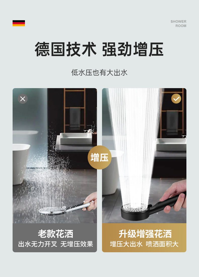 압력 증가 샤워기 헤드 욕실 샤워기 온수기 욕실 난방기 압력 증가 샤워기 핸드헬드 업그레이드