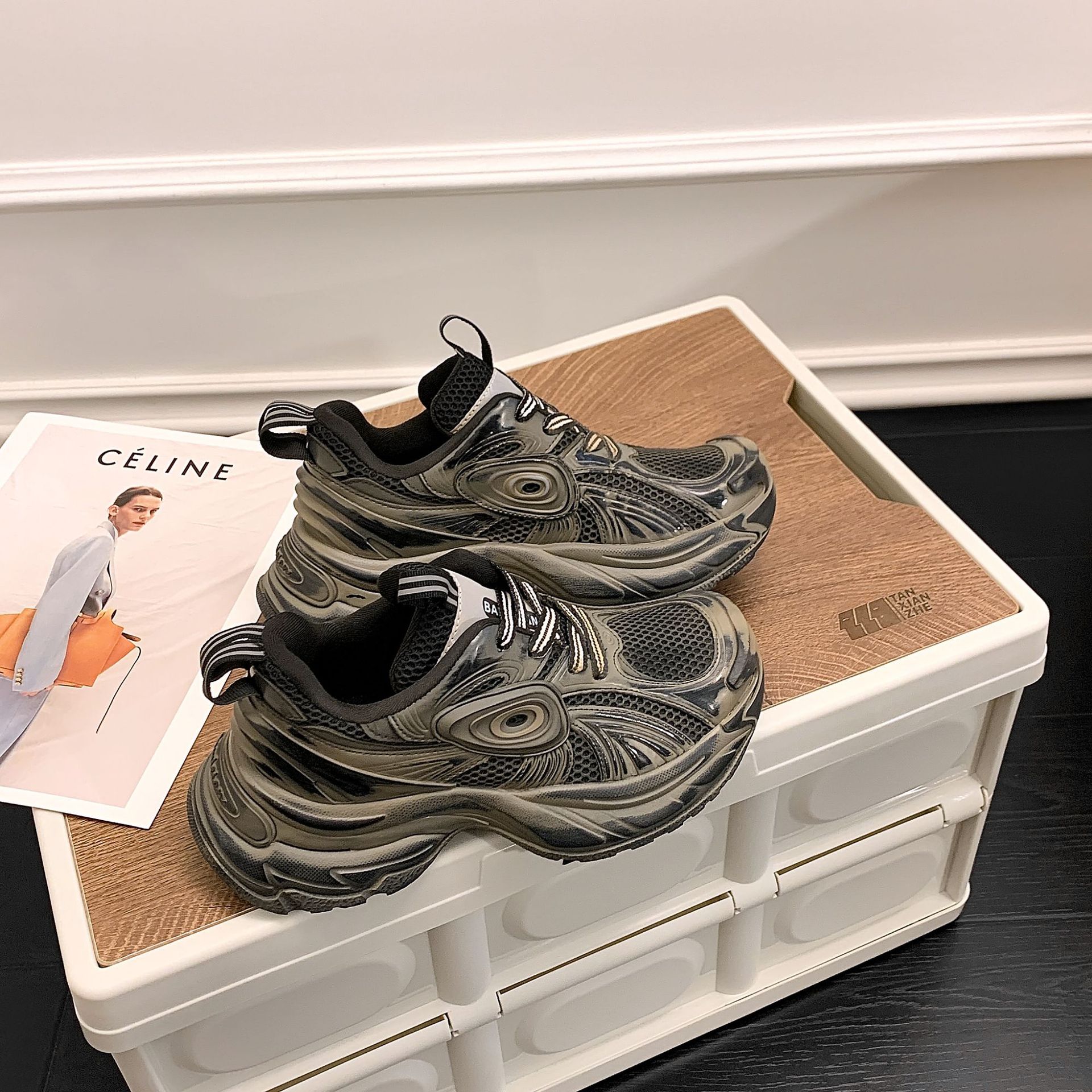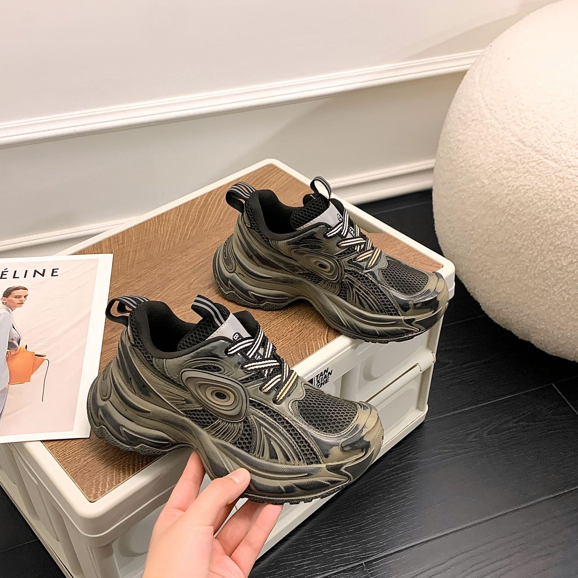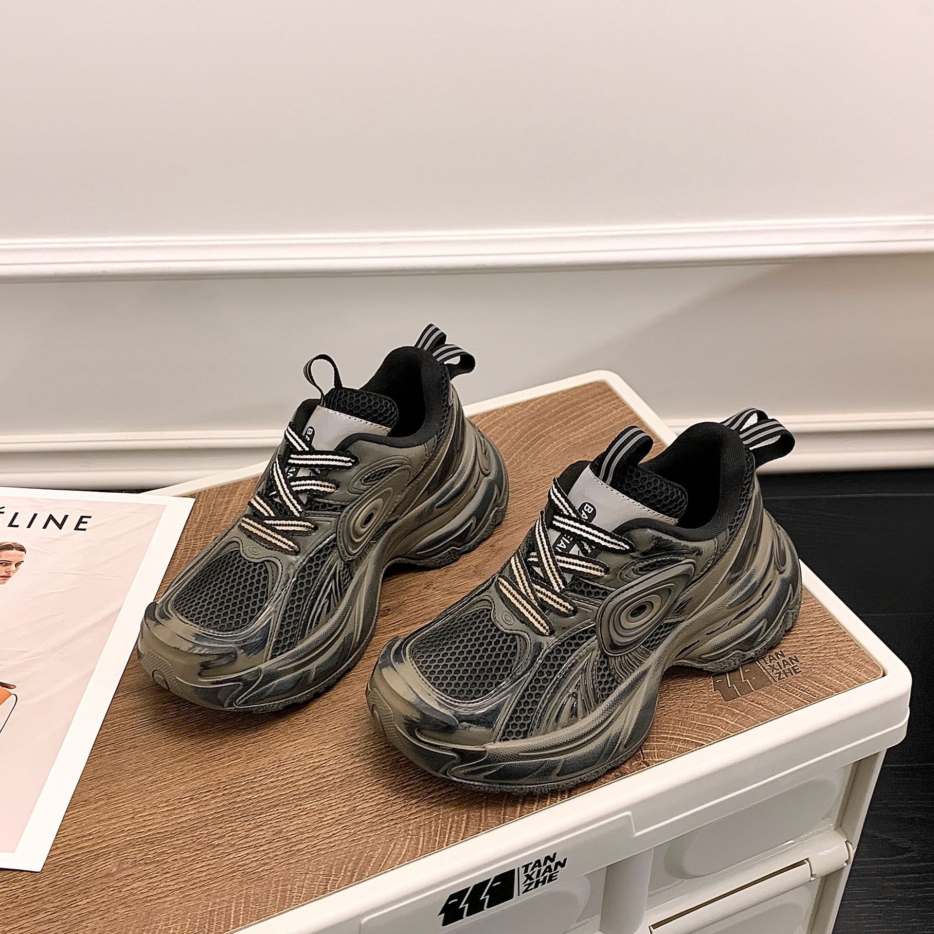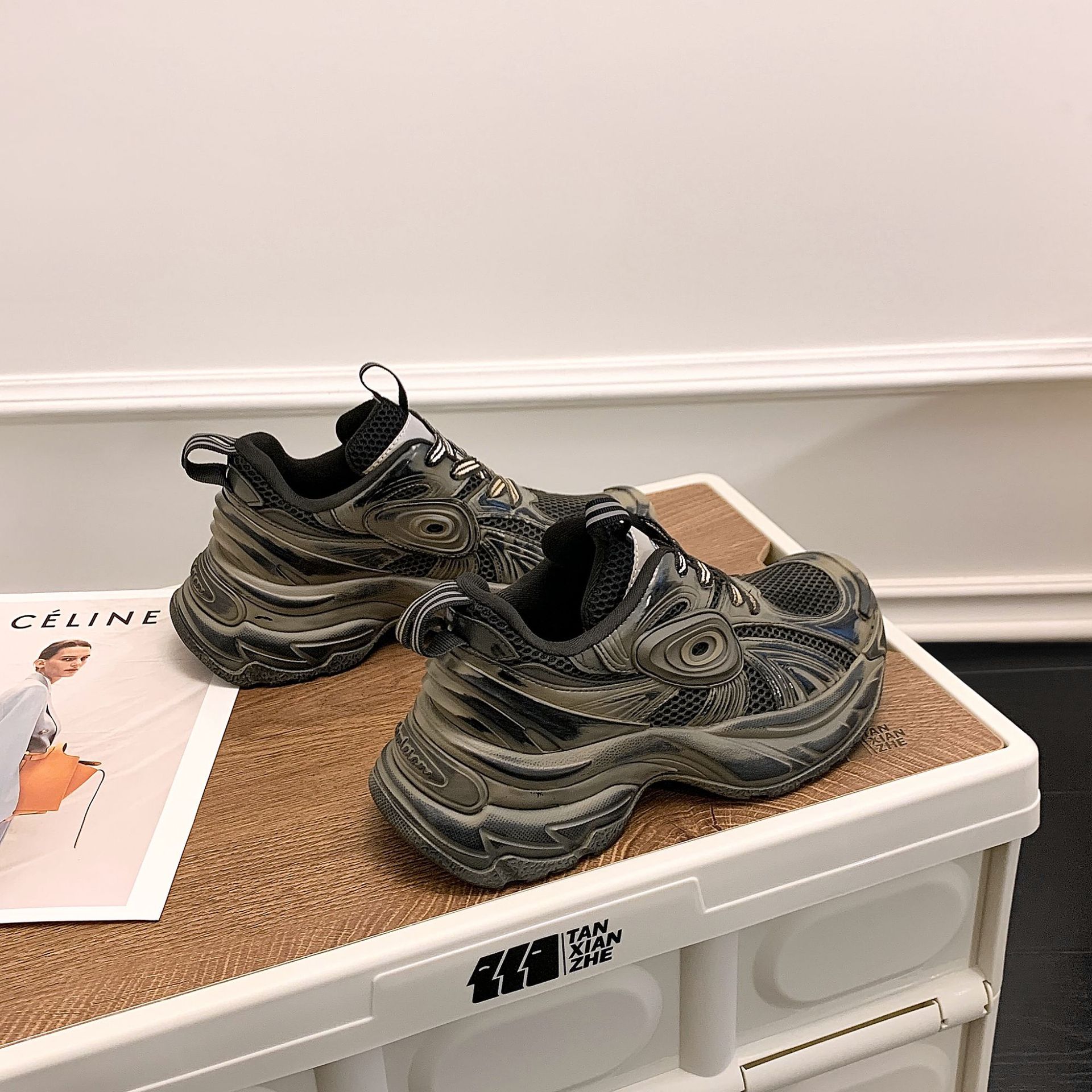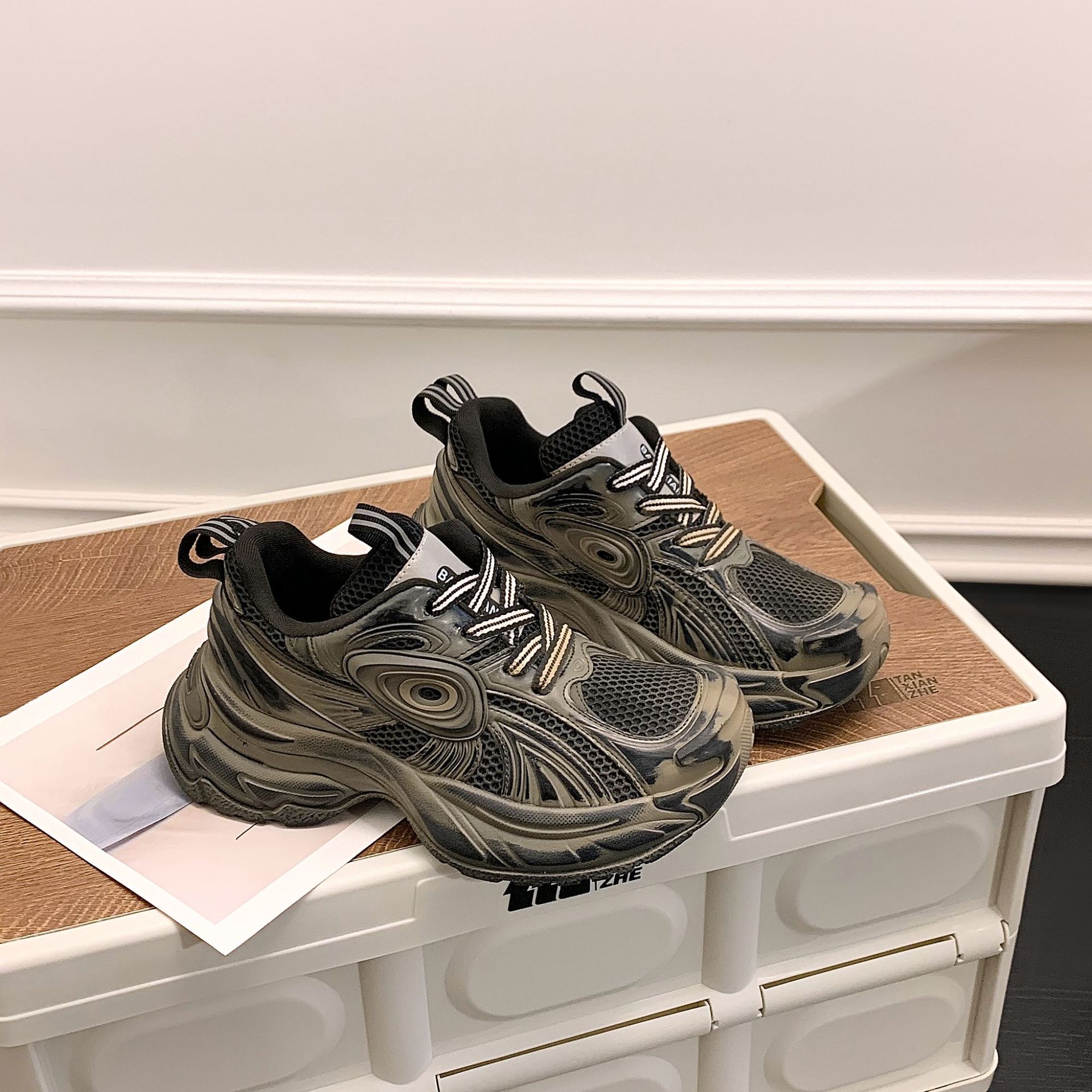 유럽 역 두꺼운 밑창 높은 아빠 신발 남자의 2024 봄과 가을 새로운 상승 슬리밍 사이버 연예인 캐주얼 스포츠 커플 신발