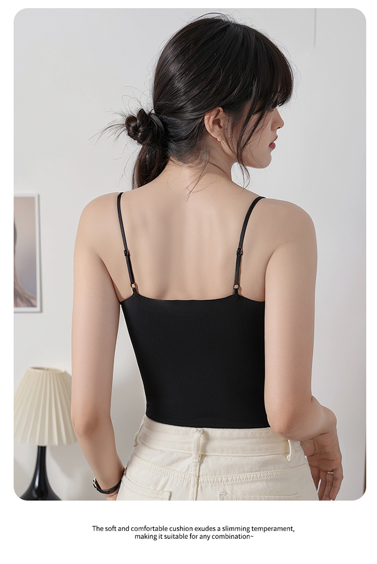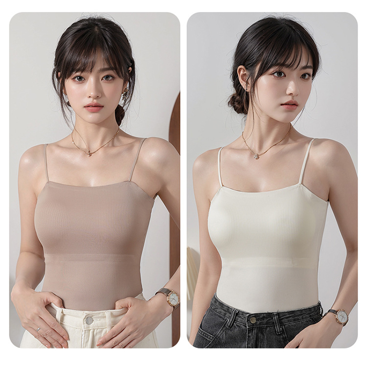 아이스 실크 카미 솔 여성용 내복 아름다운 등 원피스 어깨 스트랩 가슴 패드 원피스 외부 착용 중간 길이 조끼