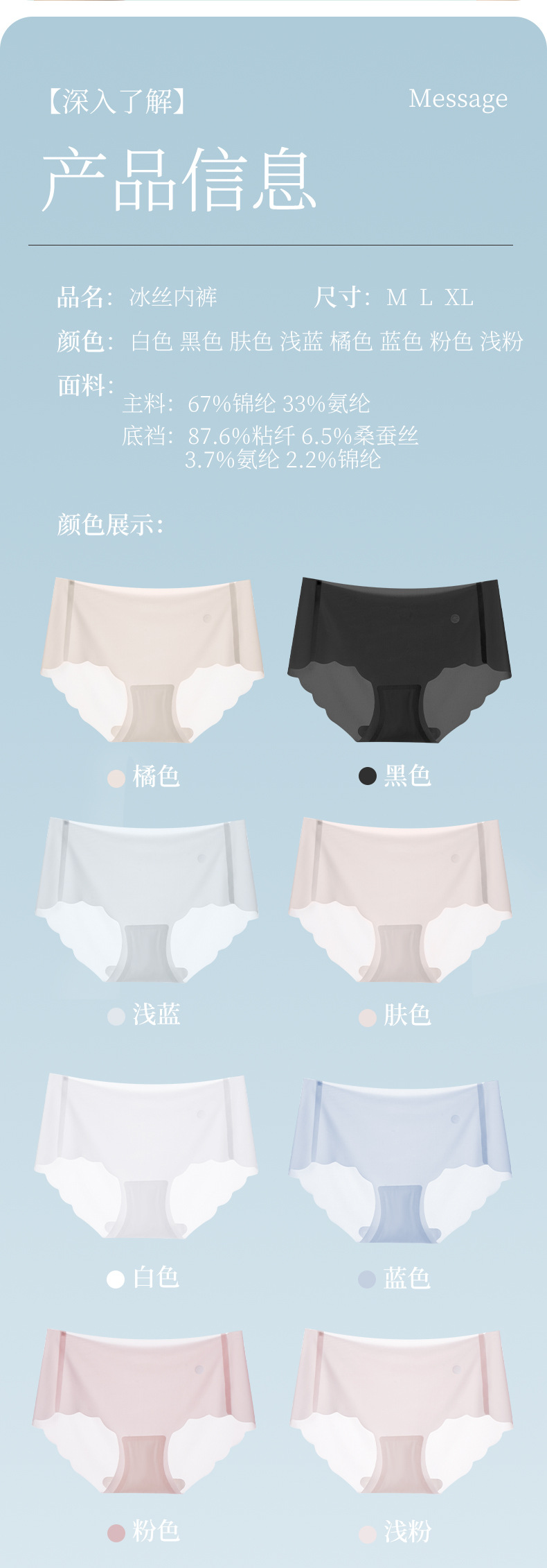 여름 새로운 치유 색상 원활한 얼음 실크 멋진 속옷 소녀 뽕나무 실크 항균 바닥 가랑이 속옷 도매스토어 가기