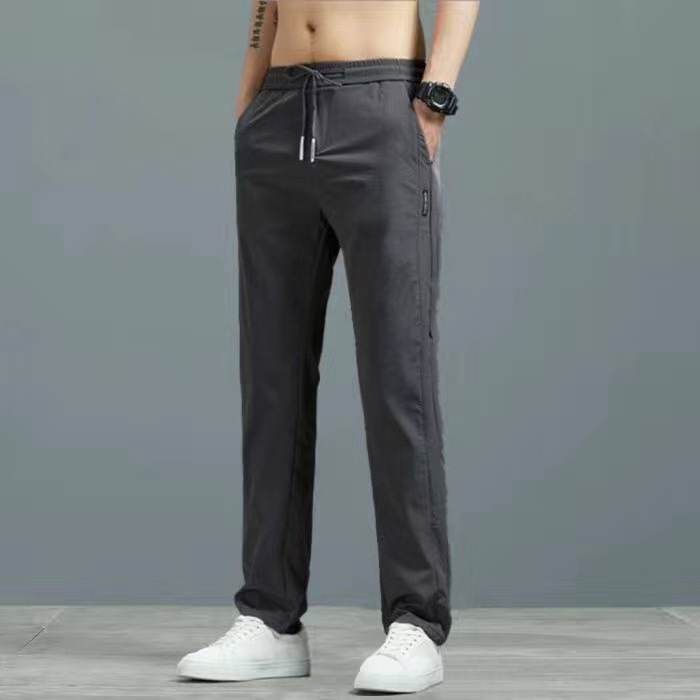공장 도매 캐주얼 아이스 실크 바지 남성 한국 플러스 사이즈 패션 트렌드 조커 단색 재고 도매 스트레이트 다리 바지