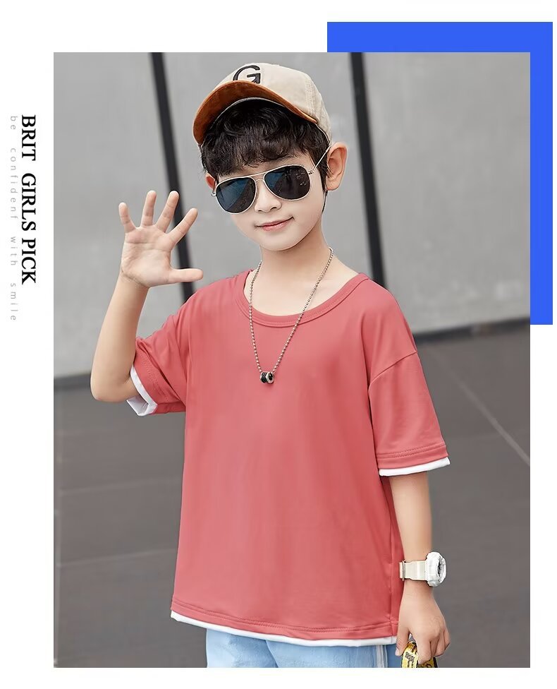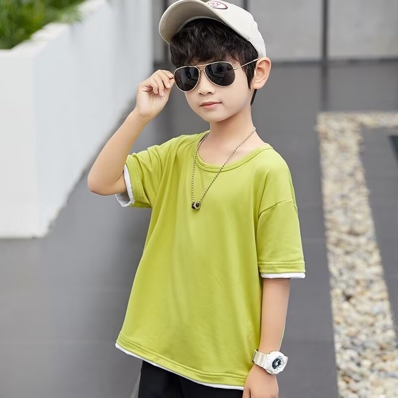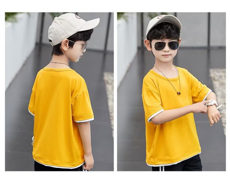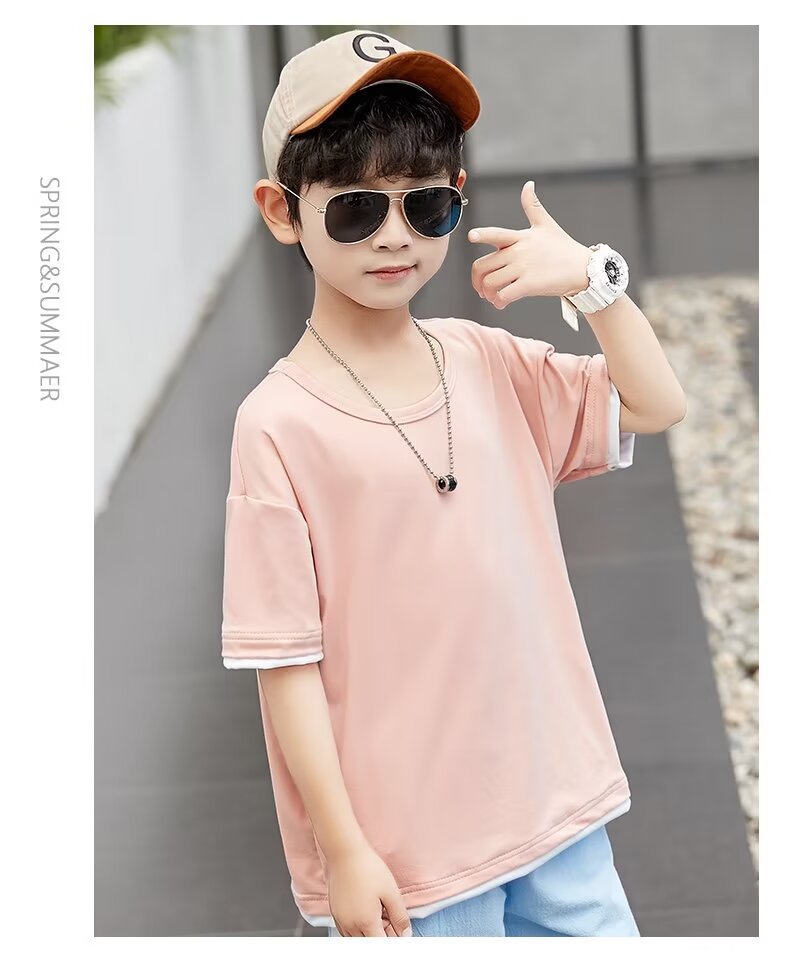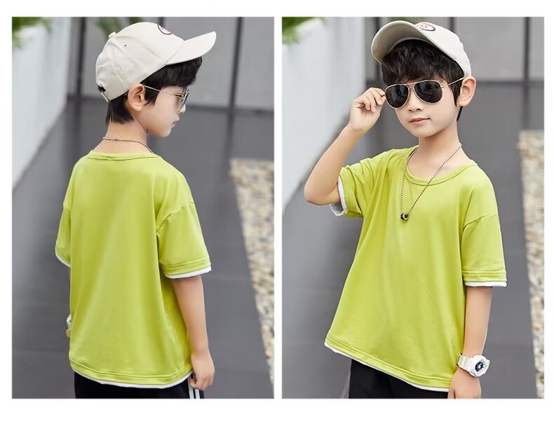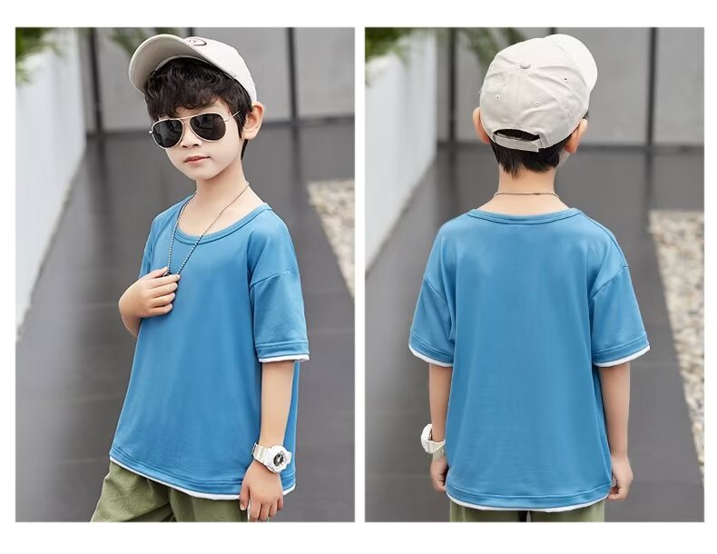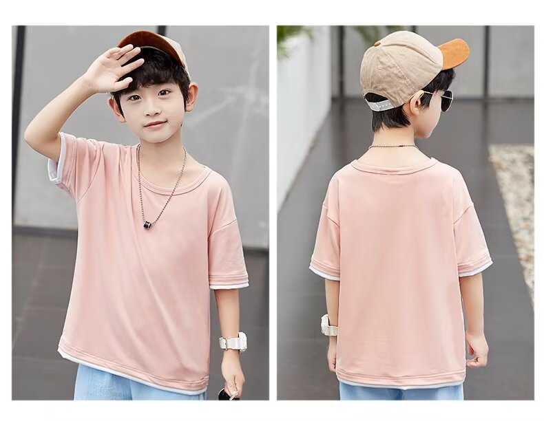 2024 새로운 여름 캐주얼 반팔 티셔츠 소년 새로운 여름 탑 빅 보이즈 루즈 트렌디 반팔