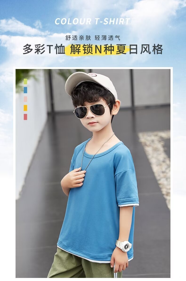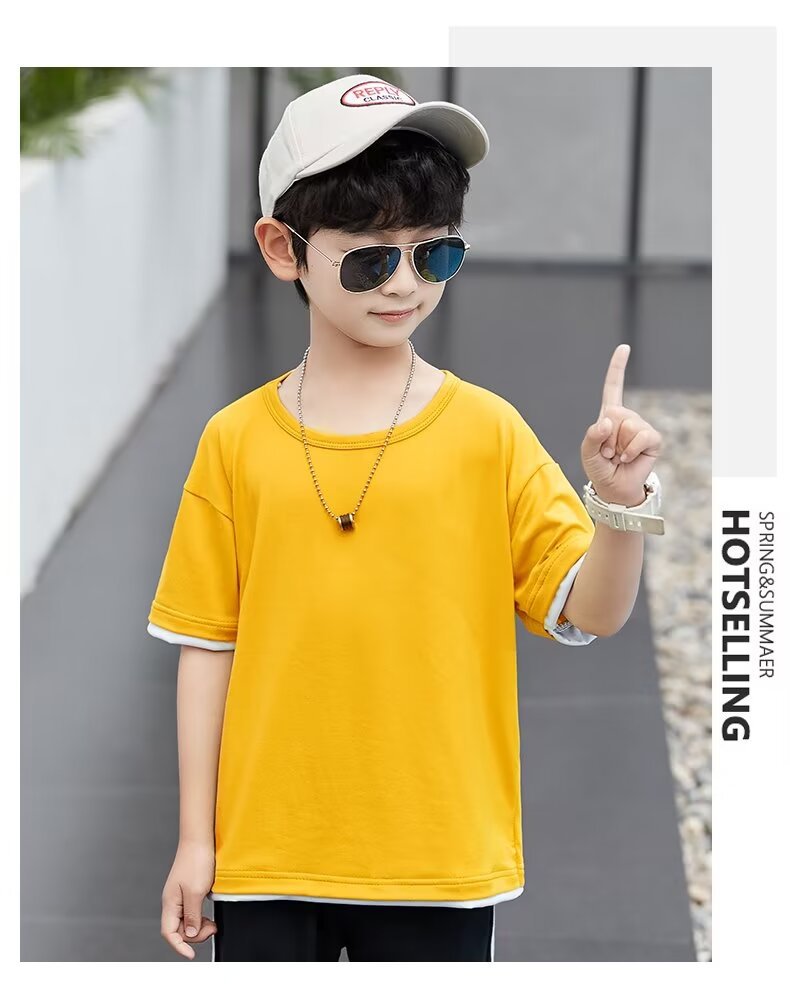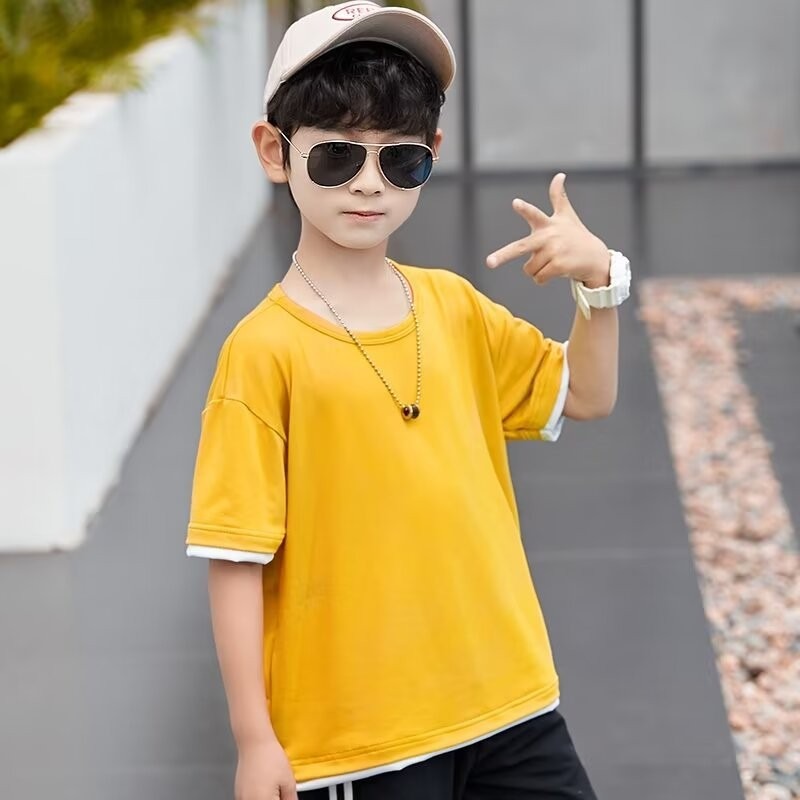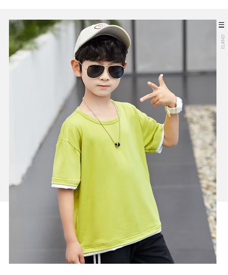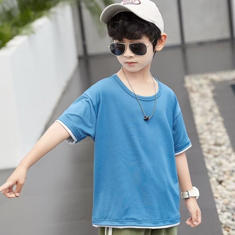 2024 새로운 여름 캐주얼 반팔 티셔츠 소년 새로운 여름 탑 빅 보이즈 루즈 트렌디 반팔스토어 가기