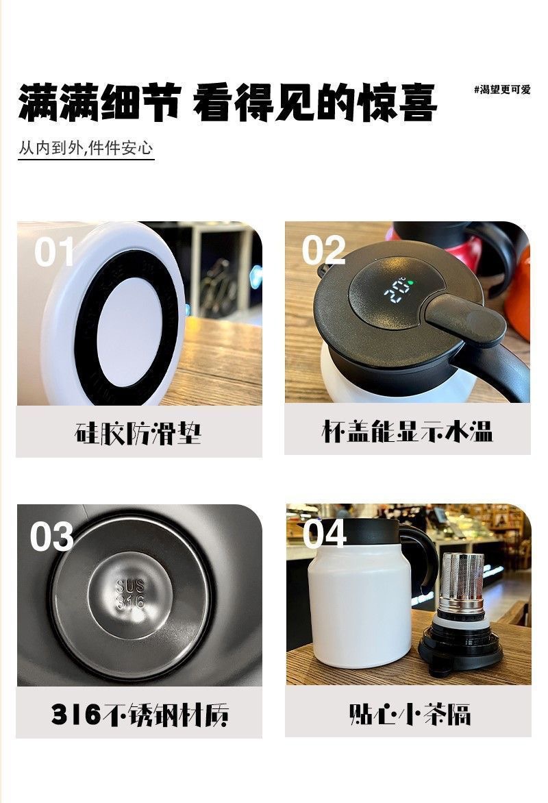 316 스테인리스 보온병, 차와 물 분리형 손잡이, 차컵, 대용량 차주전자, 명절 선물, 밀폐형