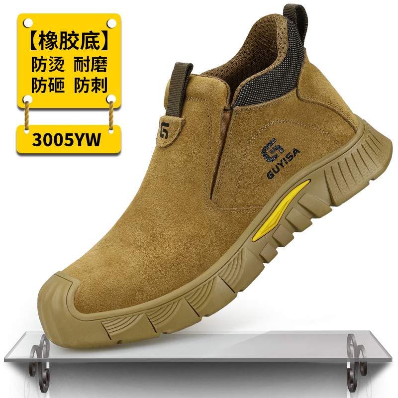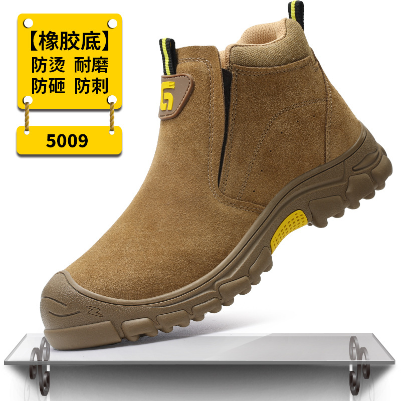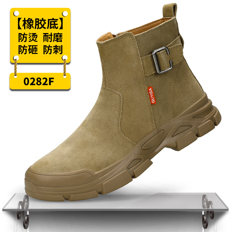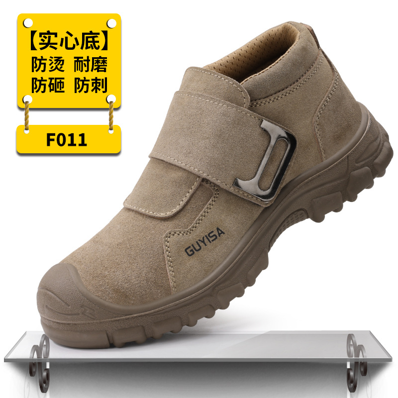 남성용 노동 보호 신발, 충격 방지 및 펑크 방지, 하이탑 용접공 안전화, 화상 방지 스웨이드 소가죽, 편안하고 내마모성 보호 신발