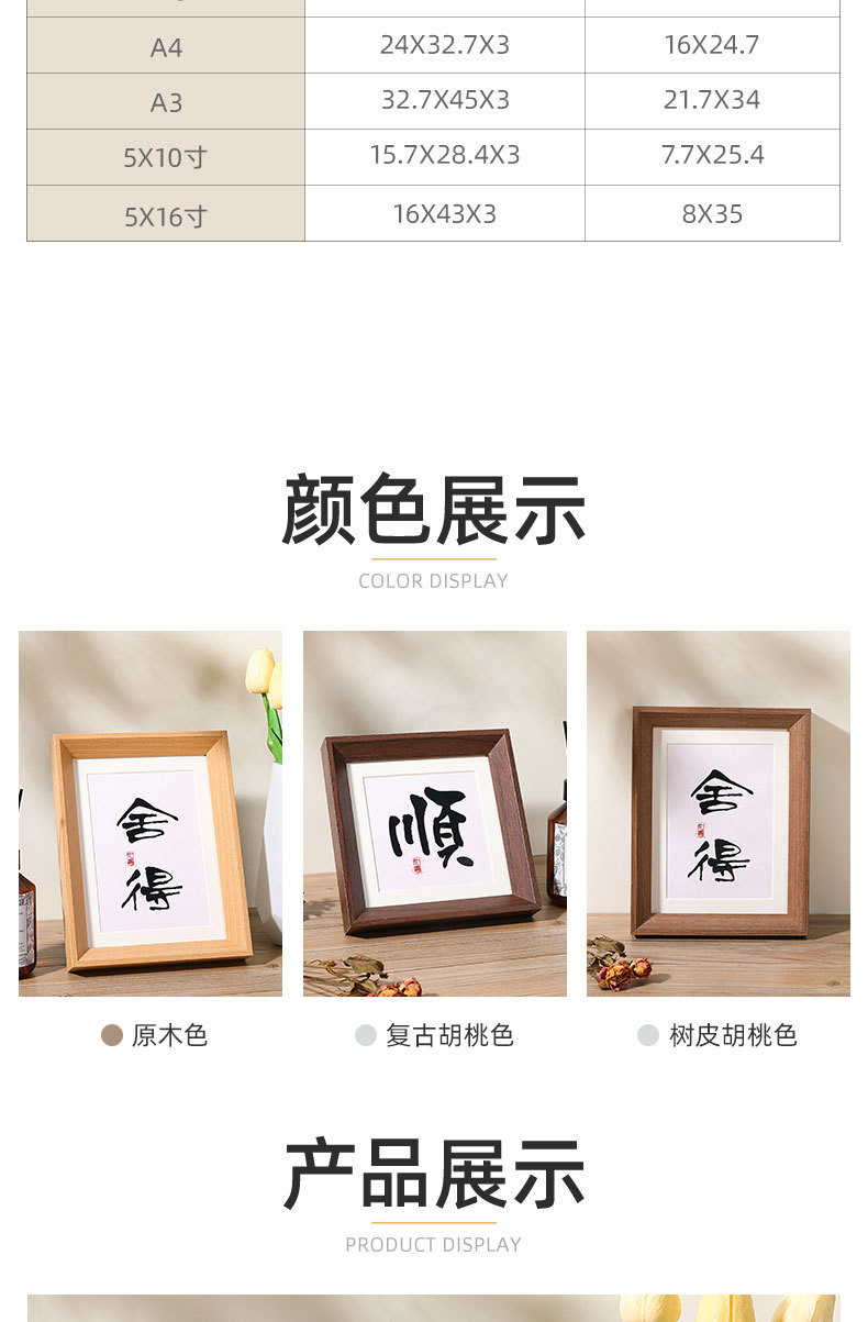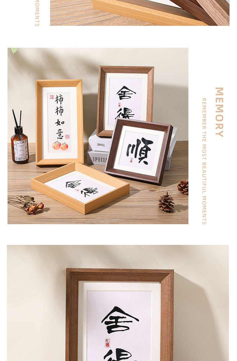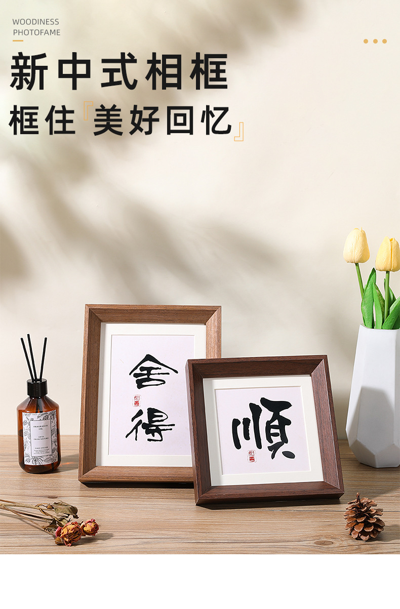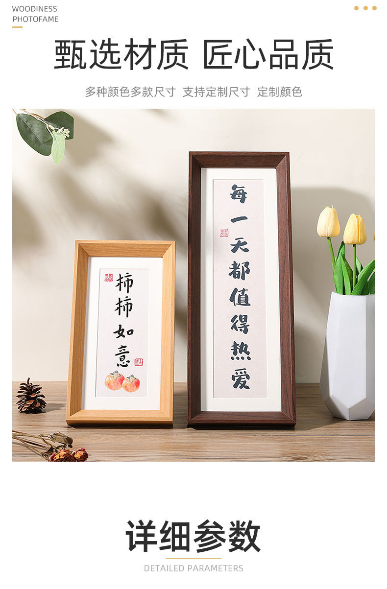 새로운 중국 스타일 레트로 넓은 가장자리 나무 테이블 사진 프레임 5678 인치 서예 장식 A4 프레임 긴 스트립 창조적 인 작품스토어 가기