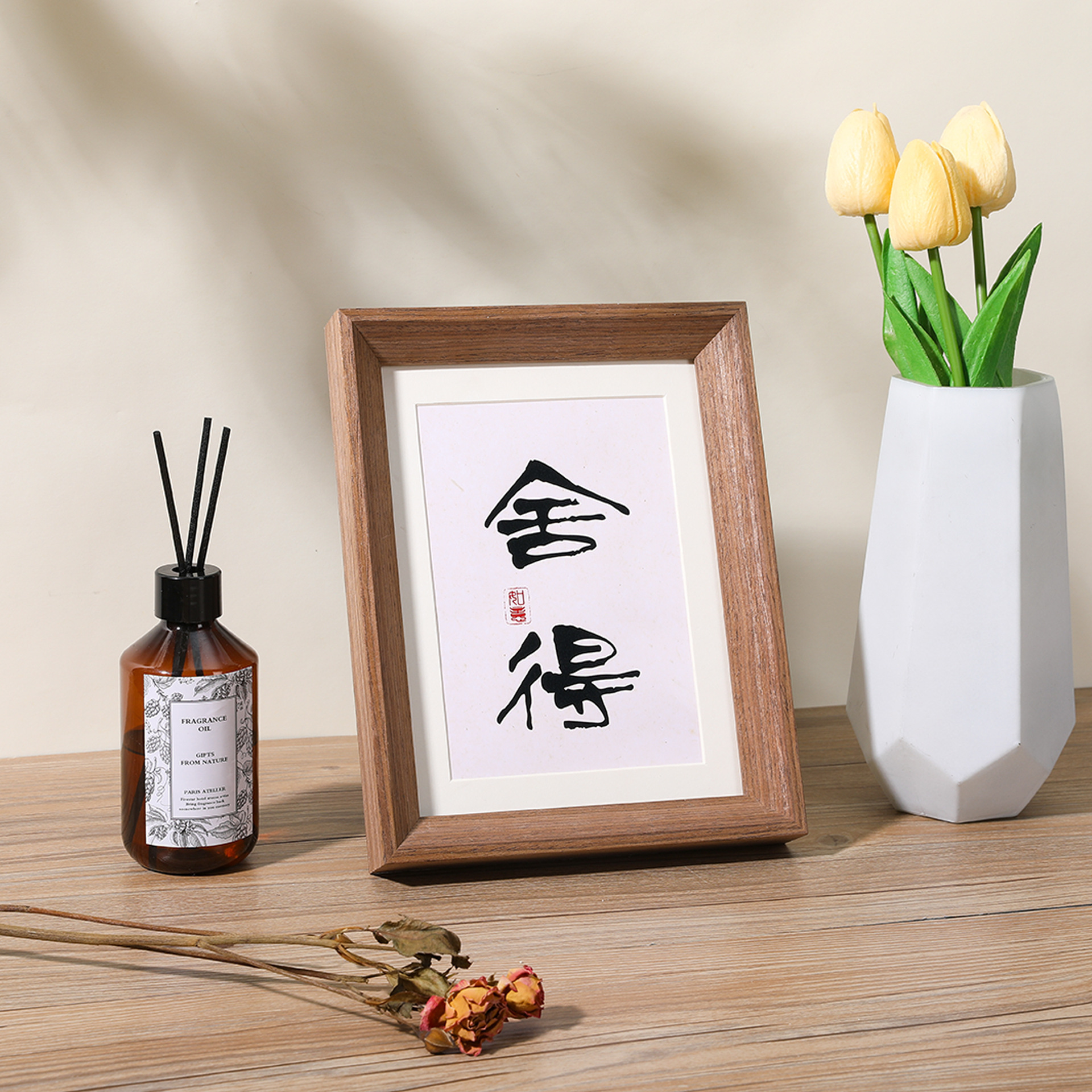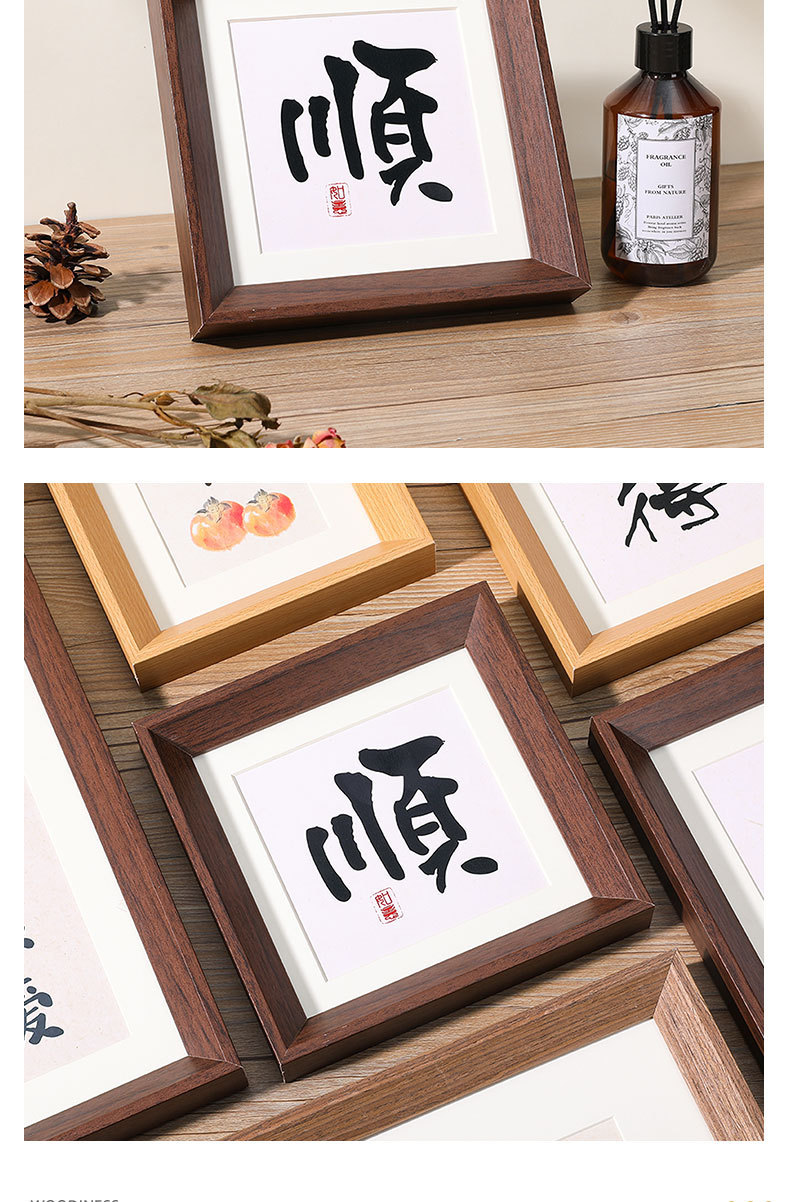 새로운 중국 스타일 레트로 넓은 가장자리 나무 테이블 사진 프레임 5678 인치 서예 장식 A4 프레임 긴 스트립 창조적 인 작품