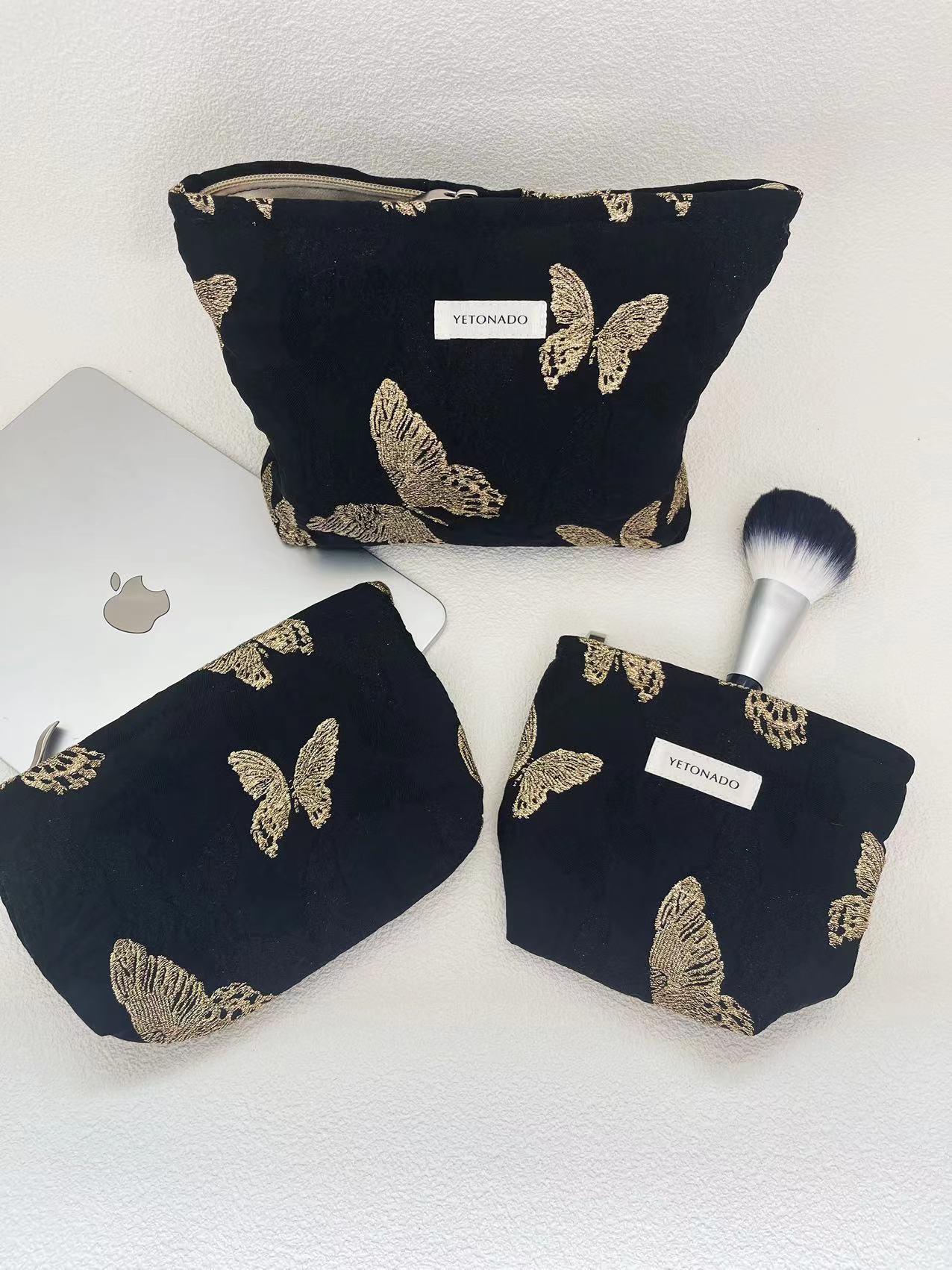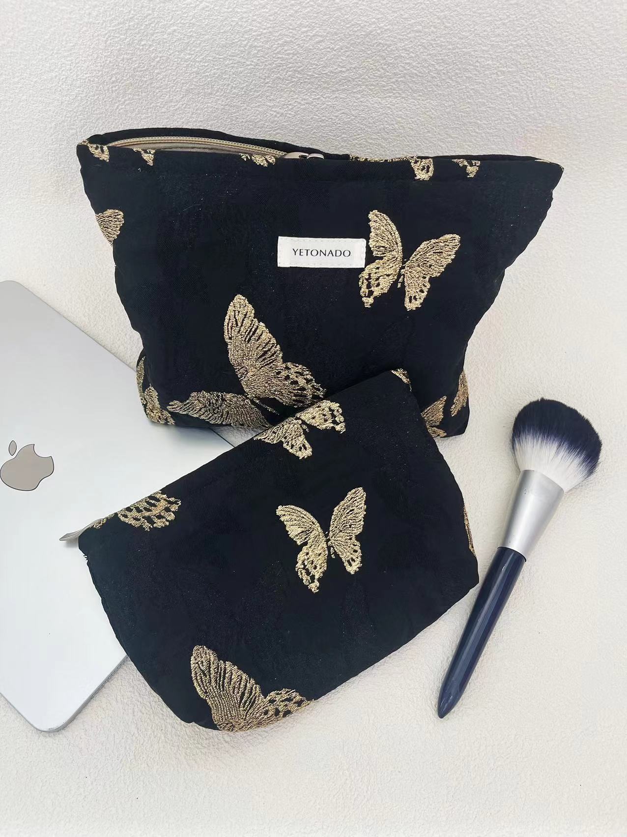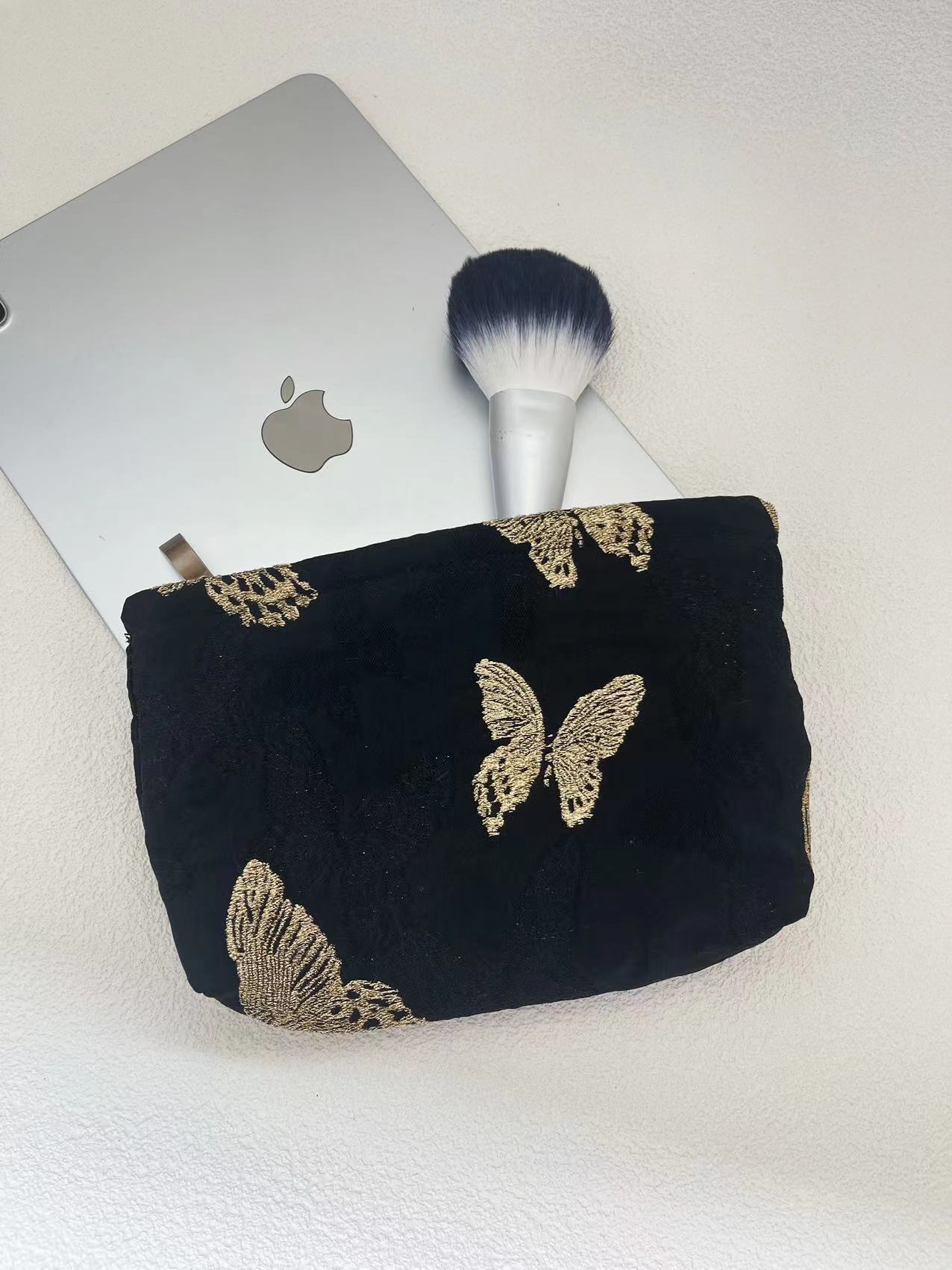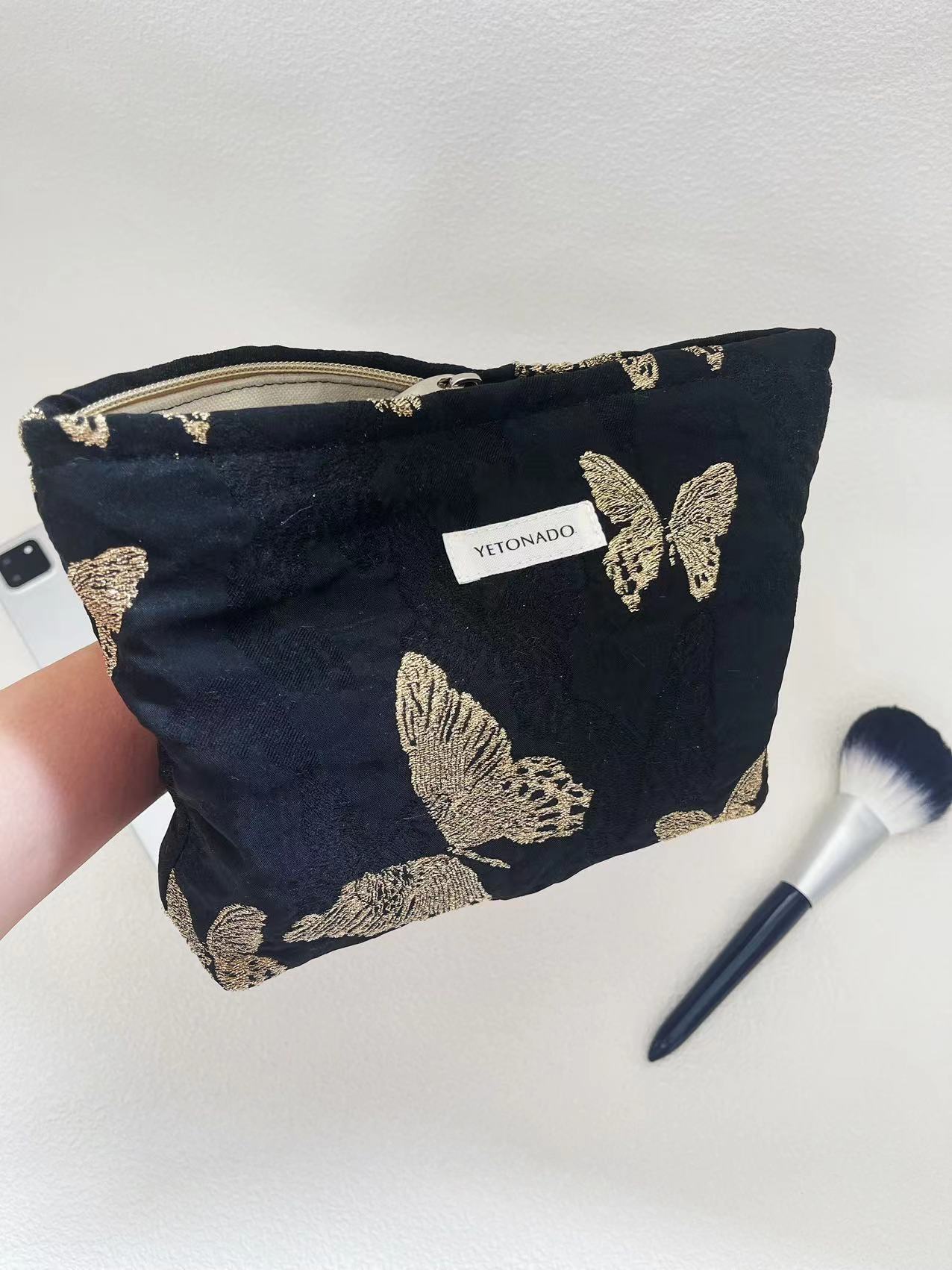 봄과 여름 새로운 대용량 화장품 가방 3 차원 골드 나비 빈티지 저장 가방 소녀 심장 세척 가방 클러치스토어 가기