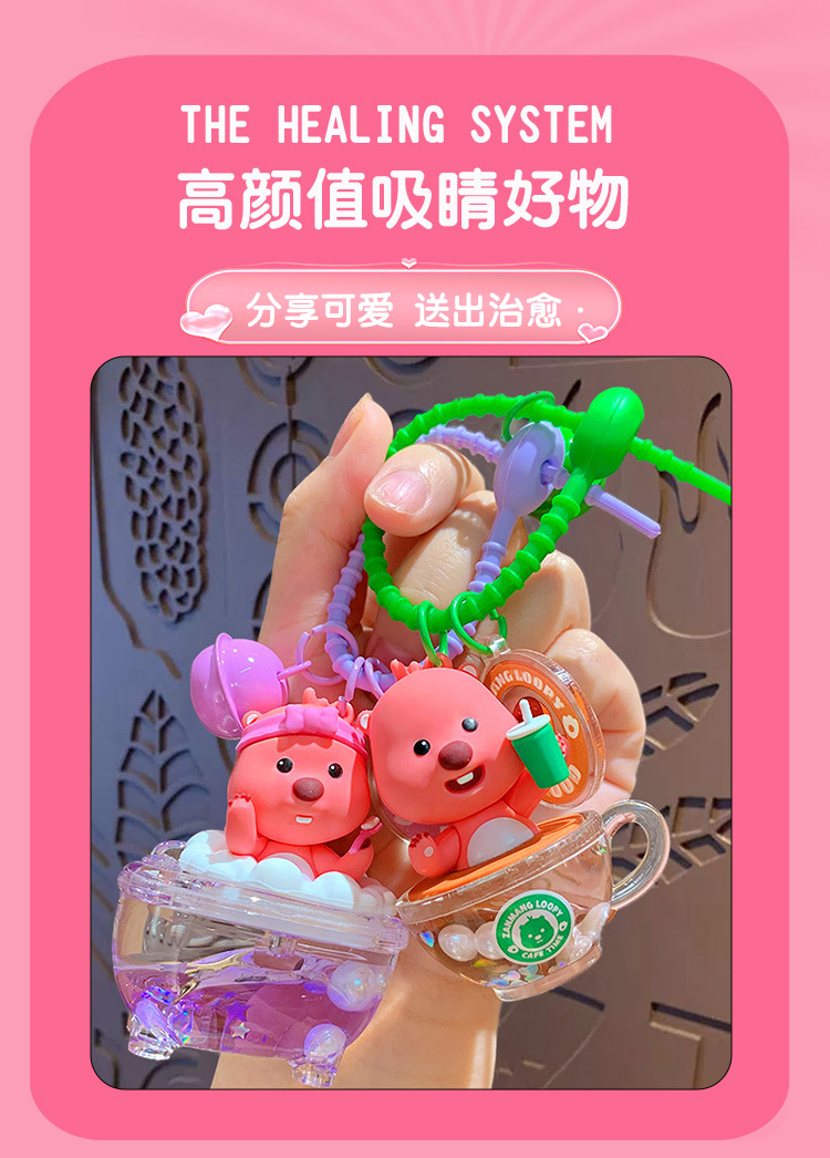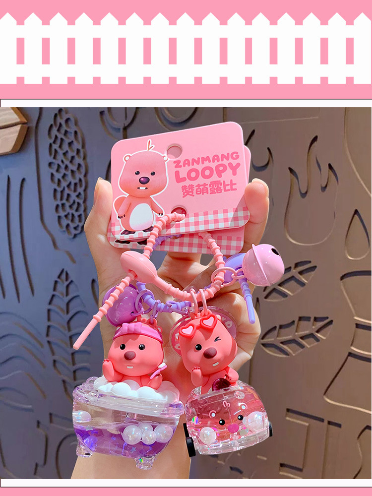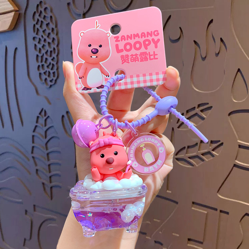 정품 만화 캐릭터 귀여운 루비 욕조 오일 흐름 모래 열쇠고리 인형 장식품 자동차 가방 열쇠고리 장식