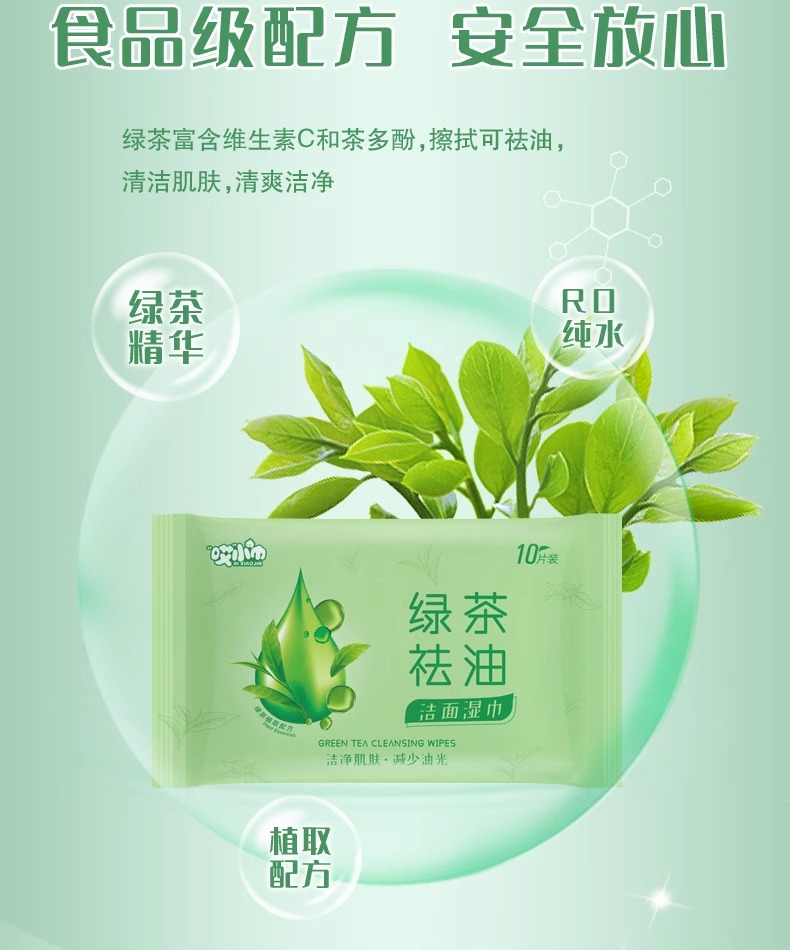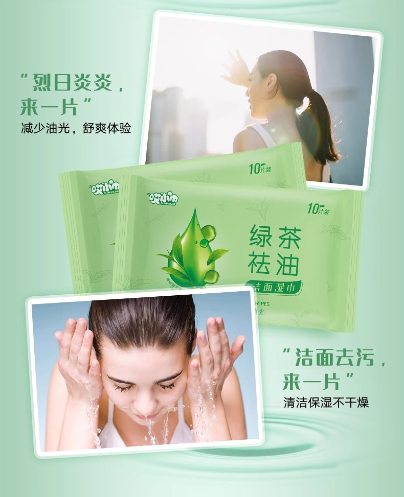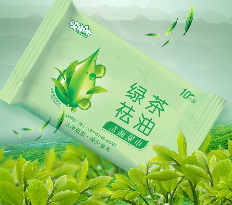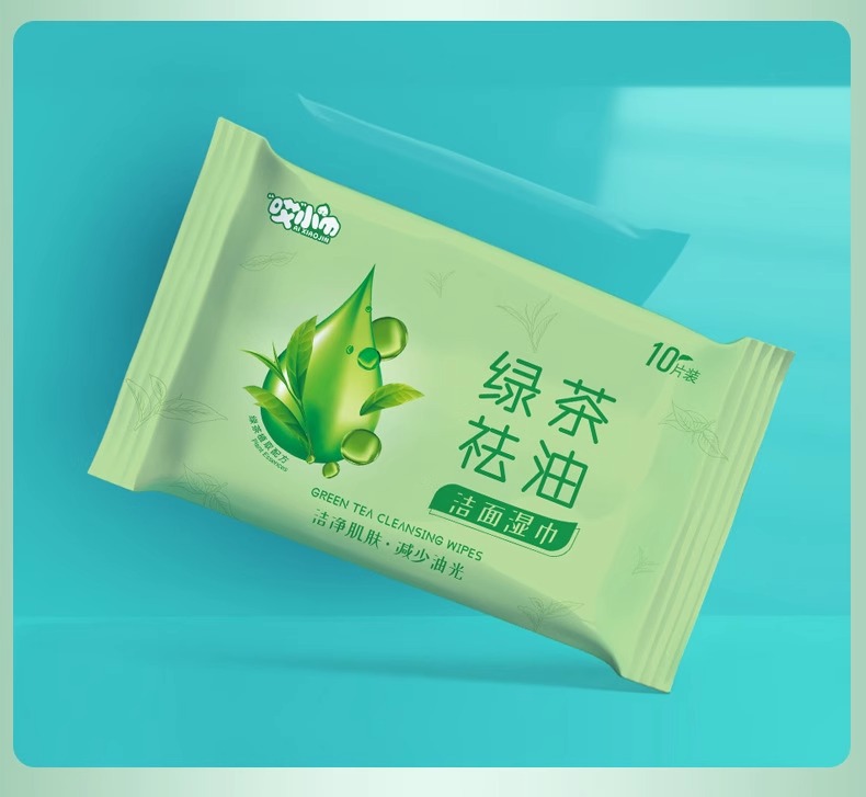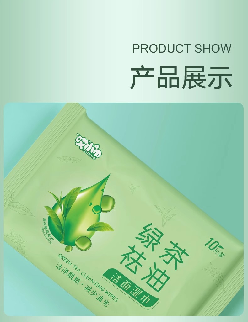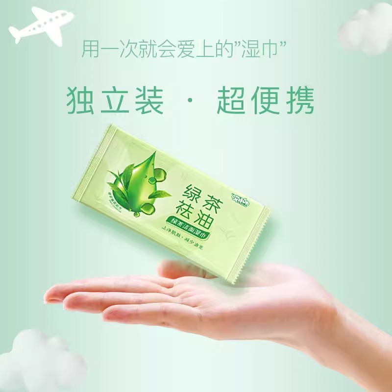 물티슈 소형 패키지, 휴대용 녹차 기름 제거, 얼굴 닦기 및 땀 닦기, 남녀 학생 군사 훈련 냉각 얼굴 물티슈스토어 가기