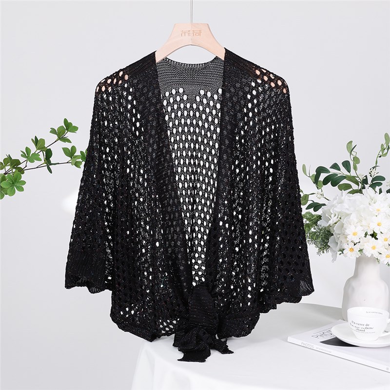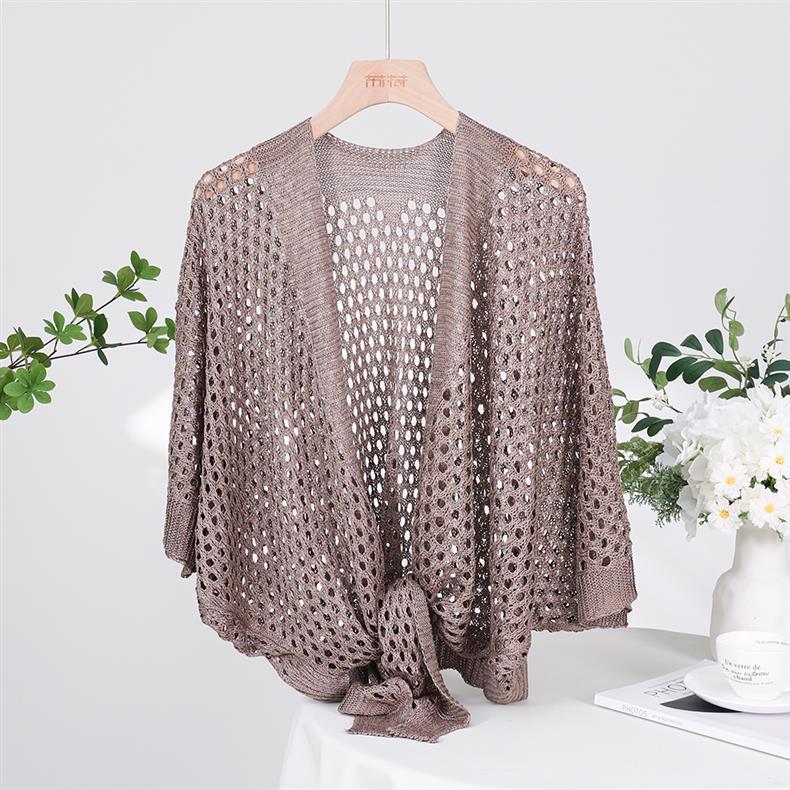 니트 목도리 여성의 여름 새로운 박쥐 소매 그리드 아이스 실크 올 매치 고기 치파오 케이프 공장 아울렛스토어 가기