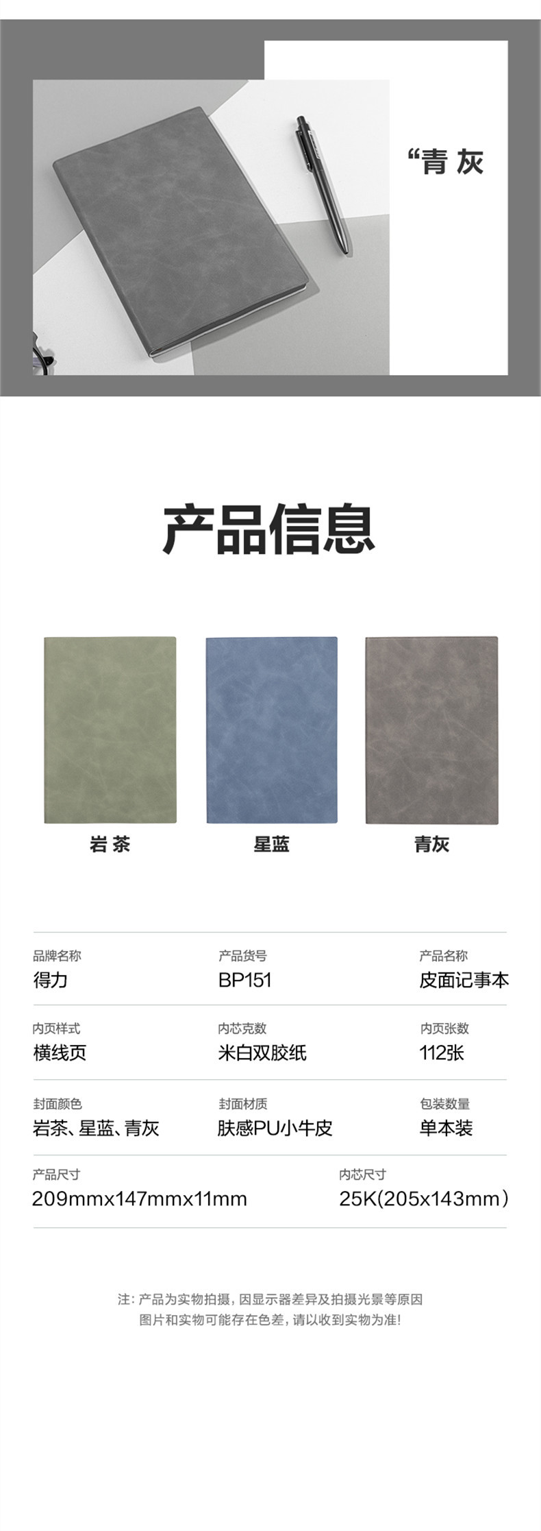델리 BP151 가죽 피부 느낌 칼 스킨 소재 노트북 사무실 회의 기록 도서 학생 저널