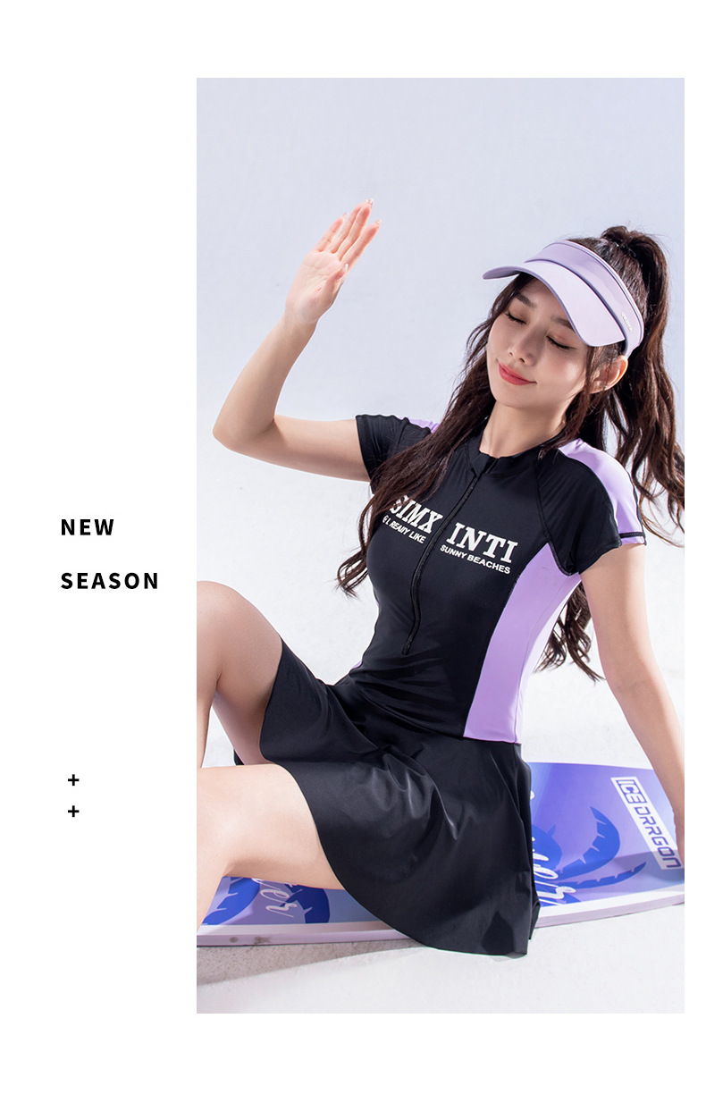 2024 새로운 도착 수영복 캐주얼 편지 컬러 블록 다이빙 세트 섹시한 슬림 핏 요정 휴가 수영 원피스스토어 가기