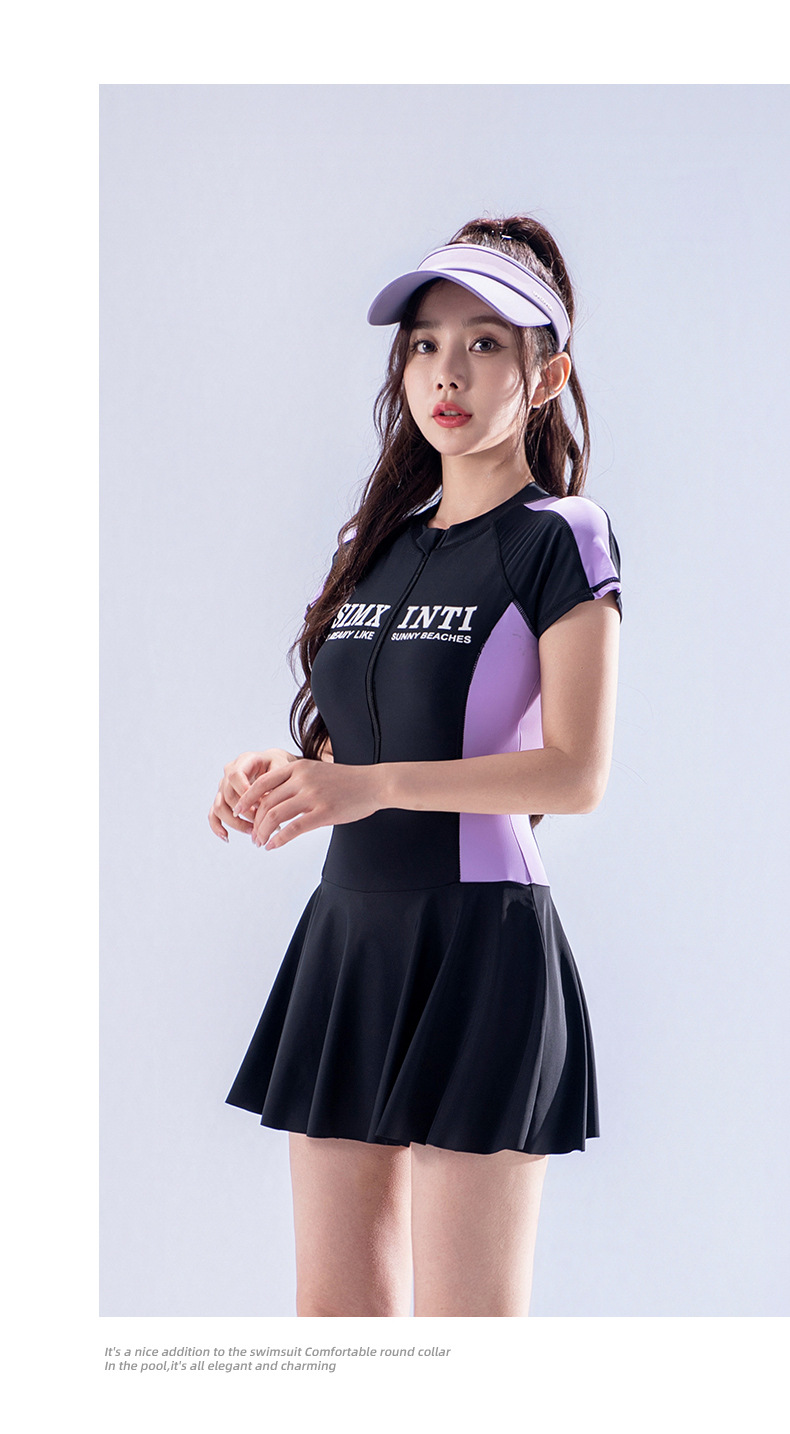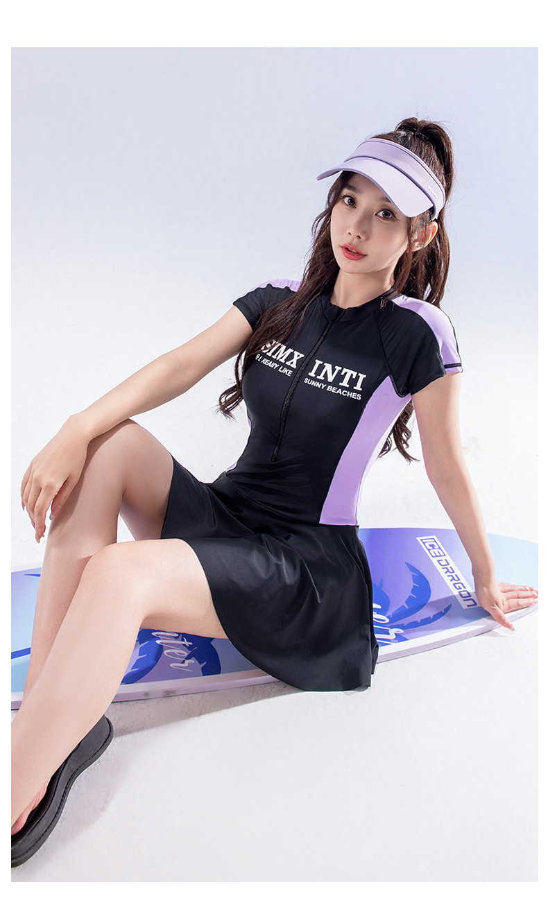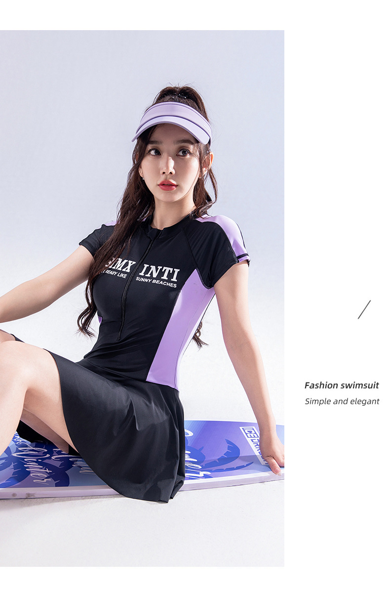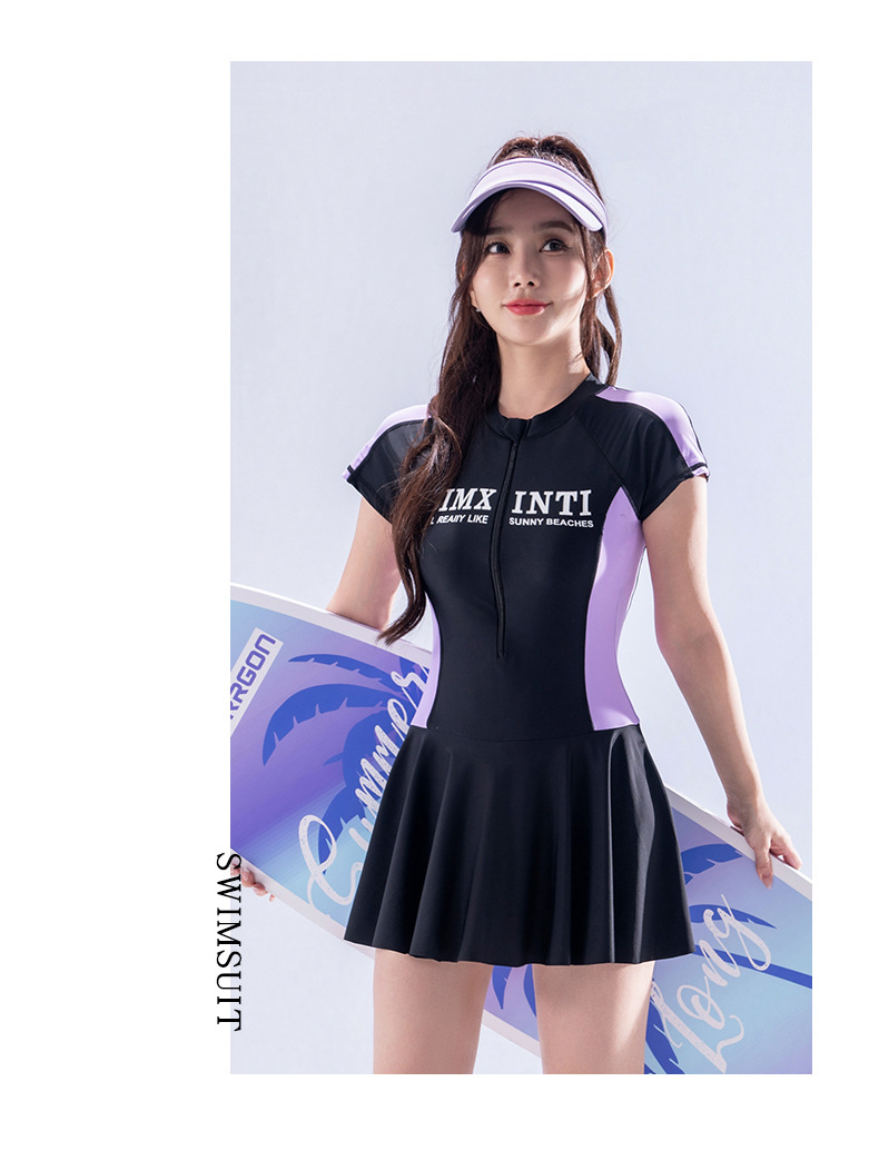 2024 새로운 도착 수영복 캐주얼 편지 컬러 블록 다이빙 세트 섹시한 슬림 핏 요정 휴가 수영 원피스