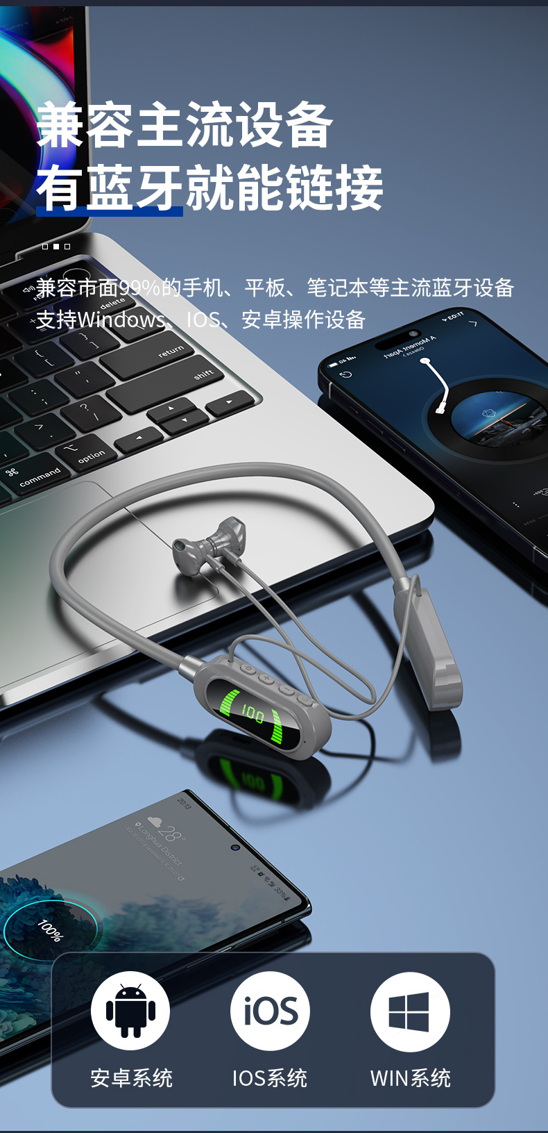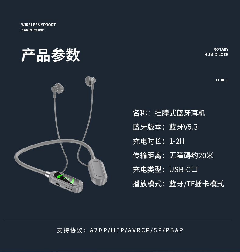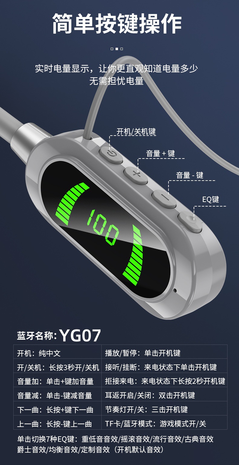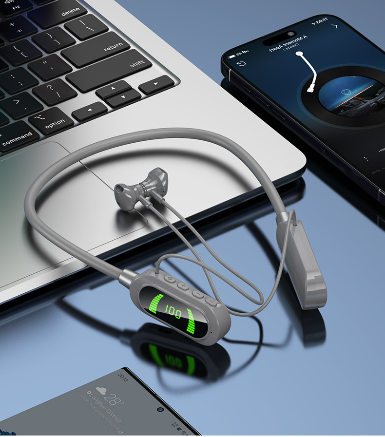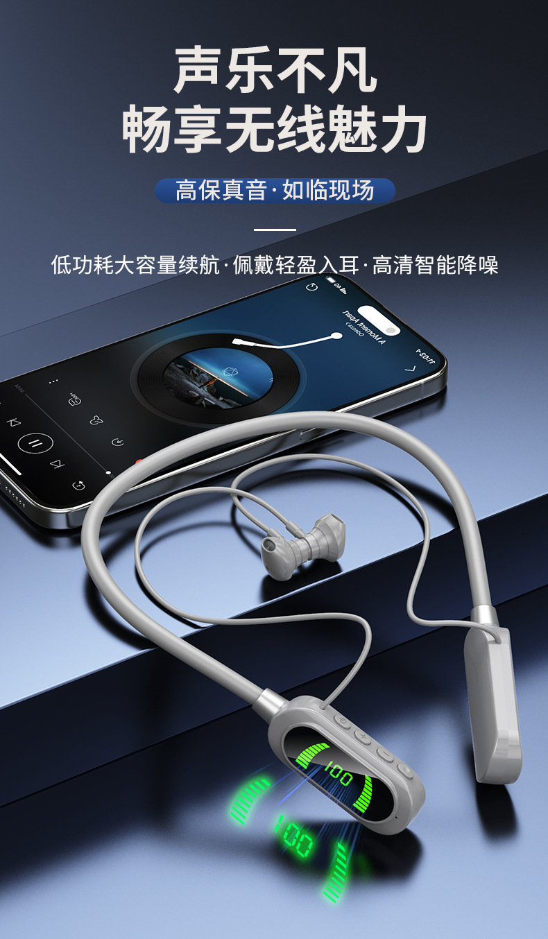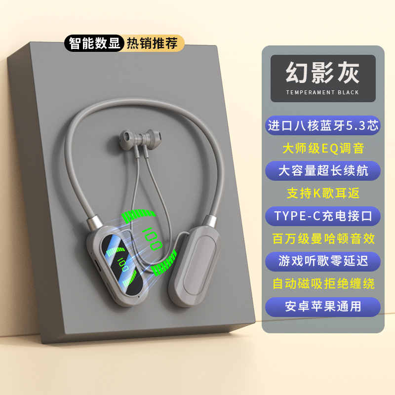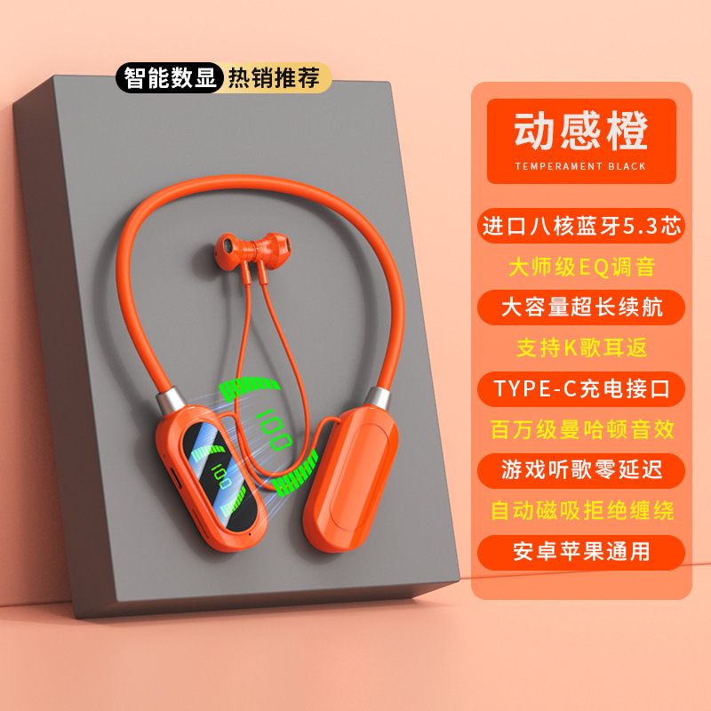 엄선된 넥밴드 무선 블루투스 헤드셋, 디지털 디스플레이, 초장기 대기 넥밴드 헤드셋, 이어백 기능, 노래방 라이브 방송스토어 가기