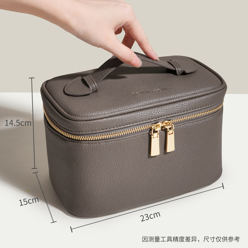 • 밝은 베이지 색 LED 화장품 가방 거울