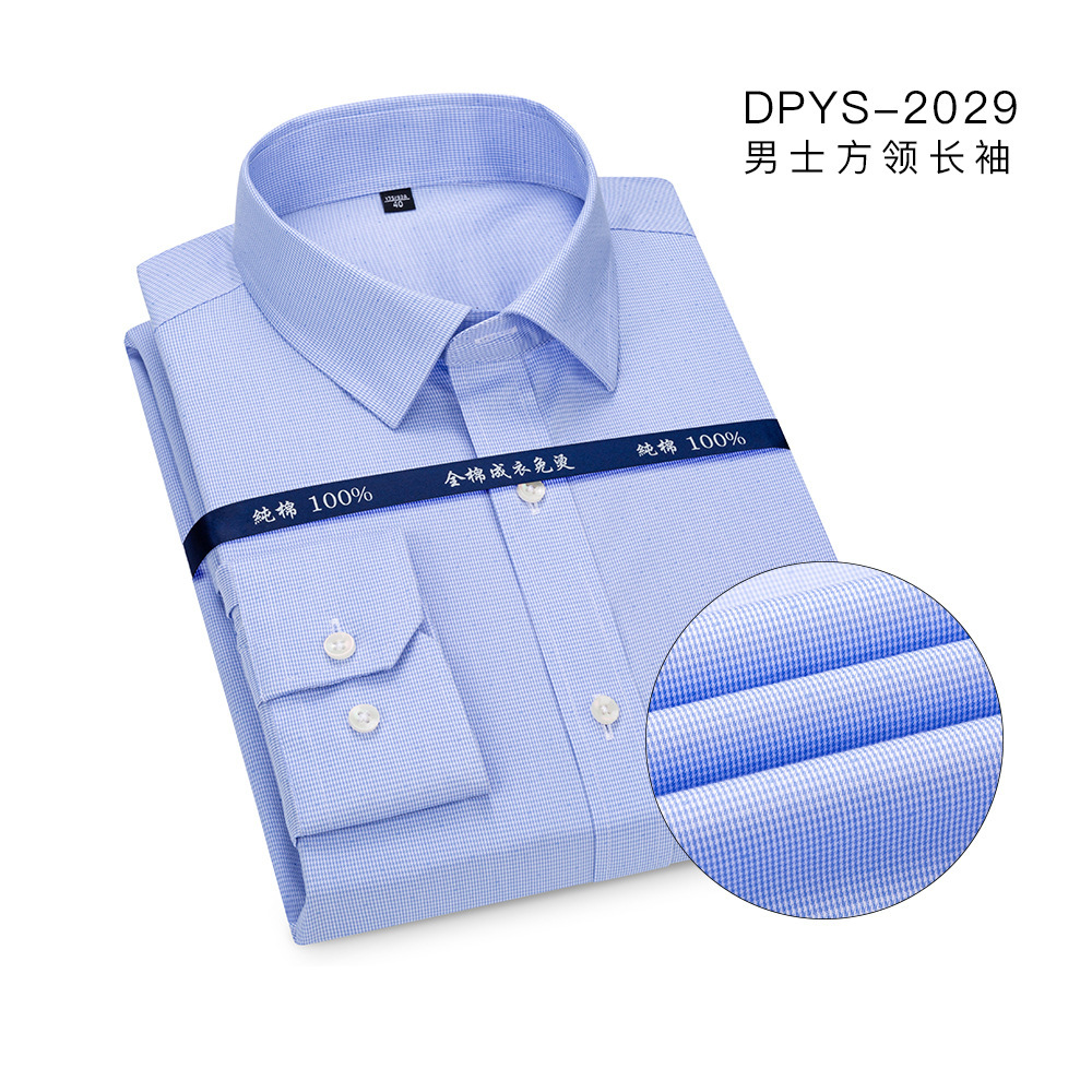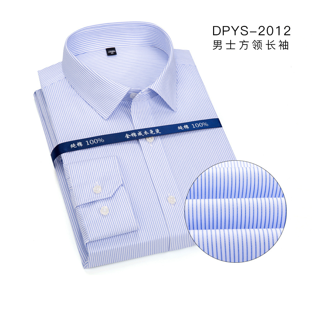 도매 100개 더블 스트립 DP 순면 기성복 다림질 필요 없는 셔츠 남성용 경비즈니스 구김 방지 정장 긴팔 셔츠스토어 가기